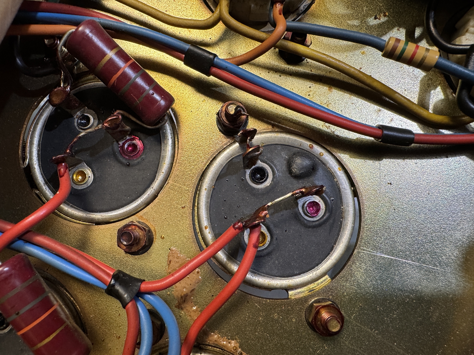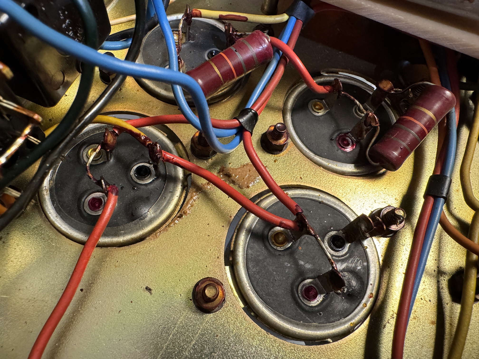Zwei der Elkos zeigen am Boden leichte Ausblühungen, funktionieren aber noch.