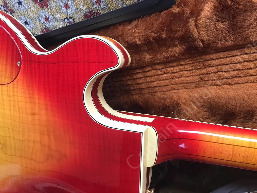 Einzigartig an dieser Gitarre dürften wohl die Decke und der Boden aus einteiligem, wunderschön geflammtem Ahorn sein.