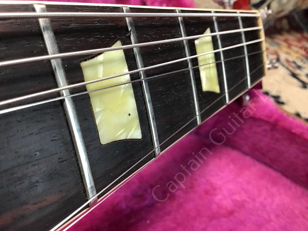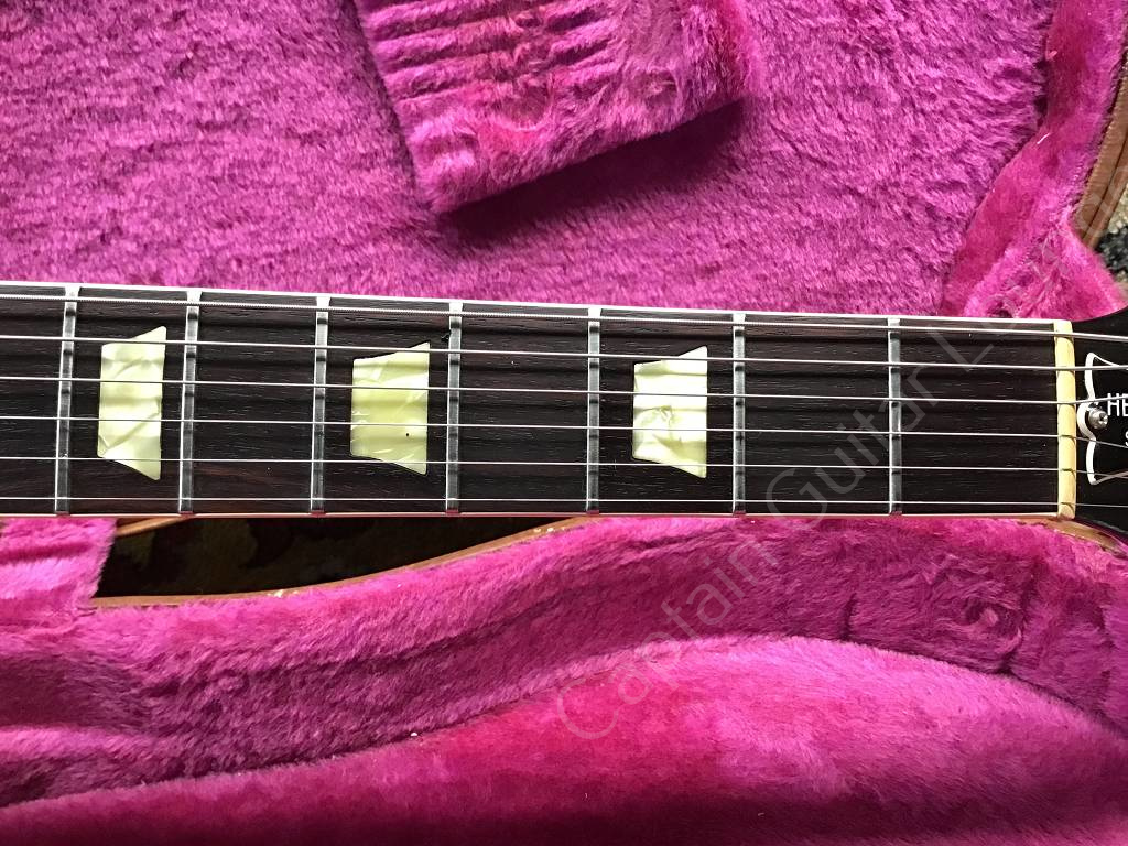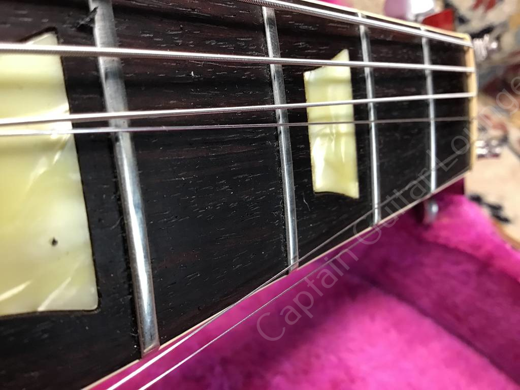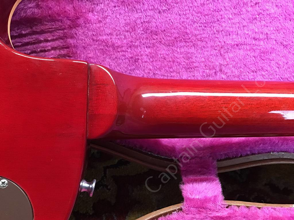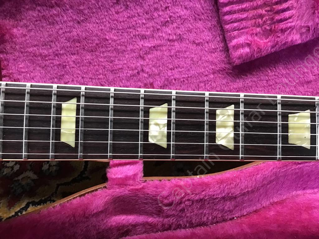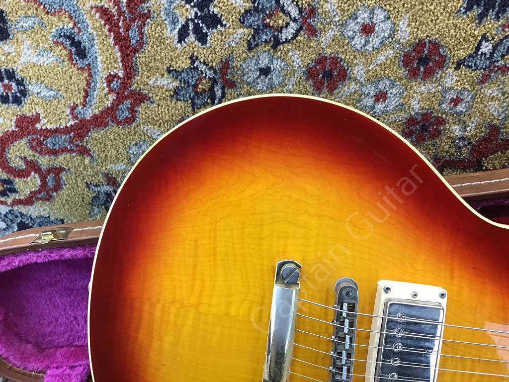 Diese Gitarre mit ihrer schön geflammten Ahorndecke in Cherry Sunburst stammt vom Erstbesitzer und ist in sehr gutem Zustand. Sie hat nur geringe Gebrauchsspuren und die original Bünde sind fast wie neu.