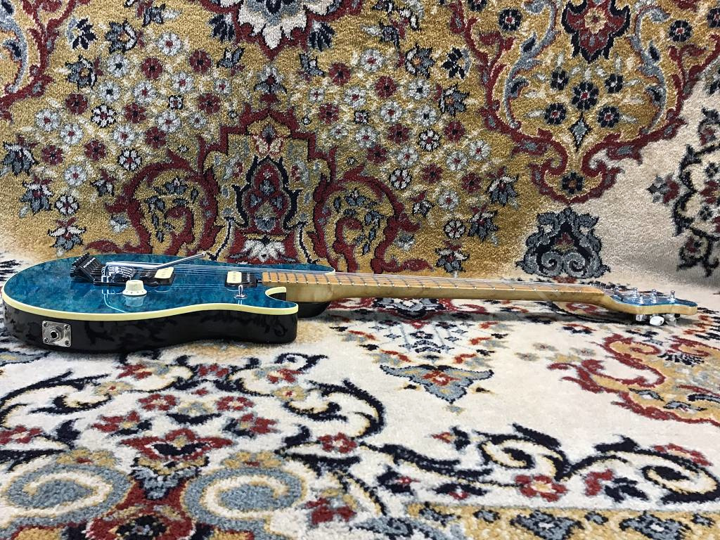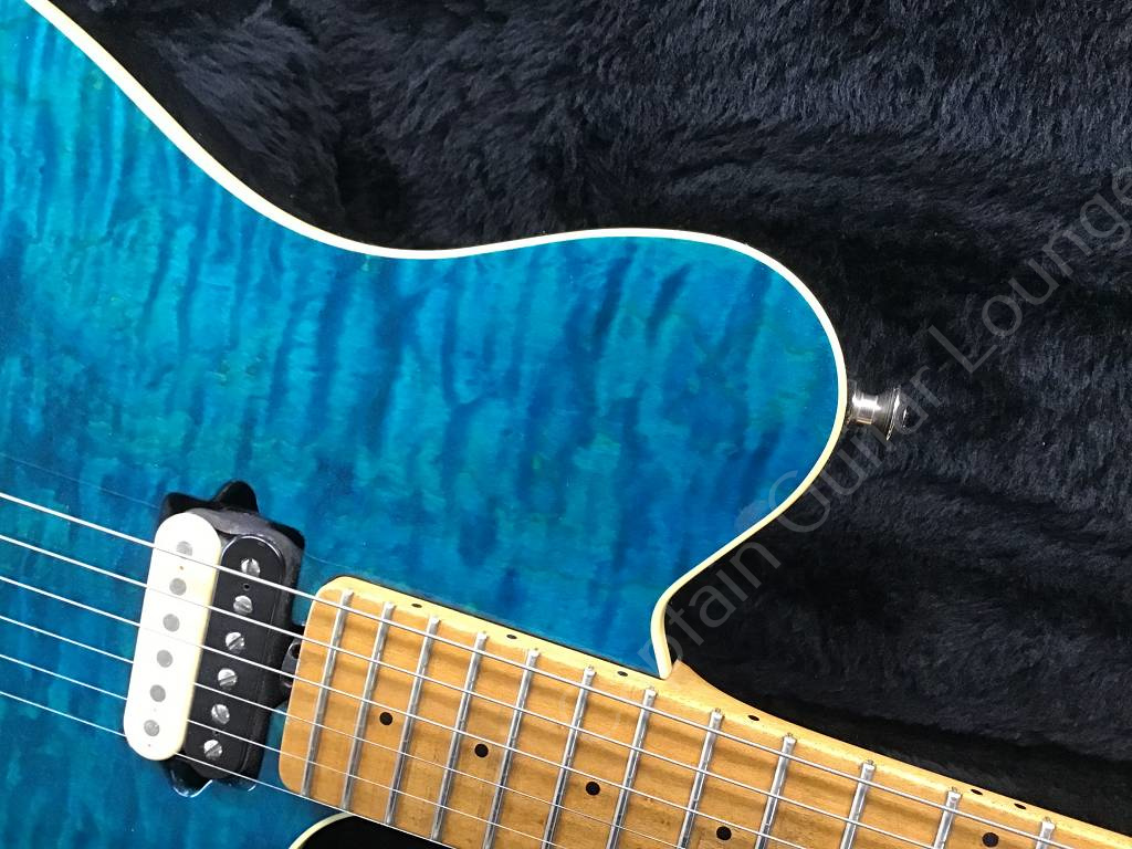 Die blaue Farbe ist wie bei vielen dieser Gitarrenmodelle leicht ins grünliche verblasst.