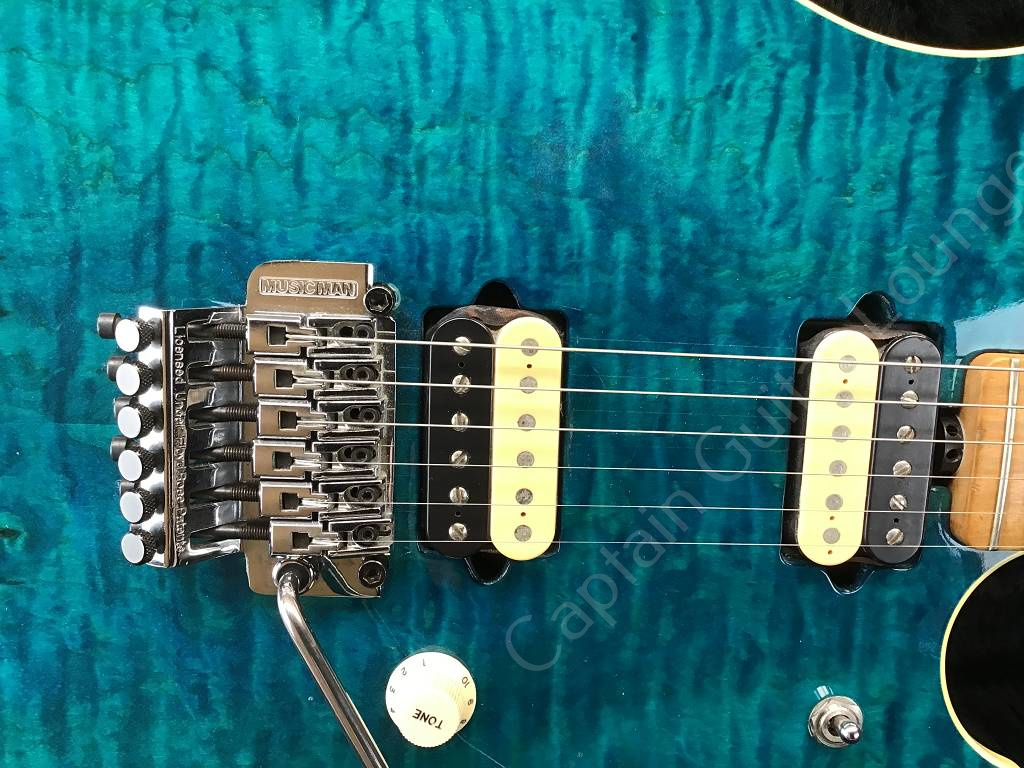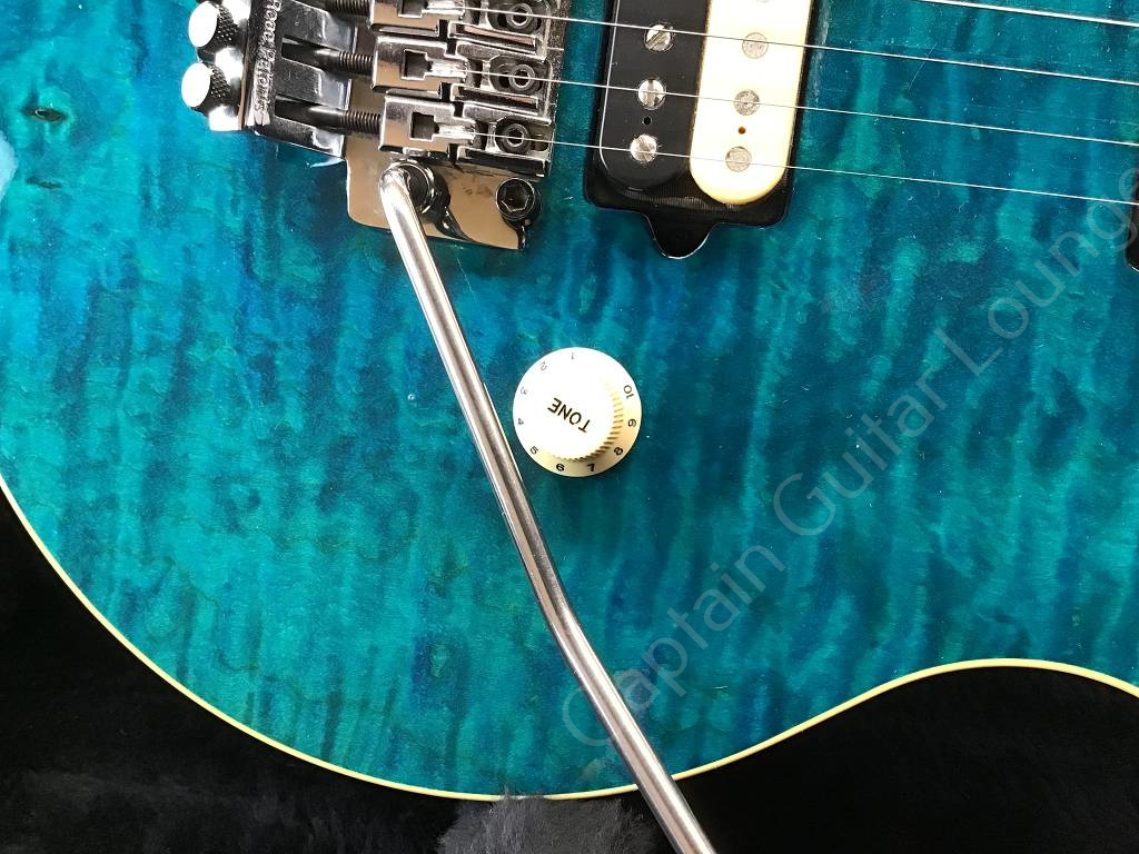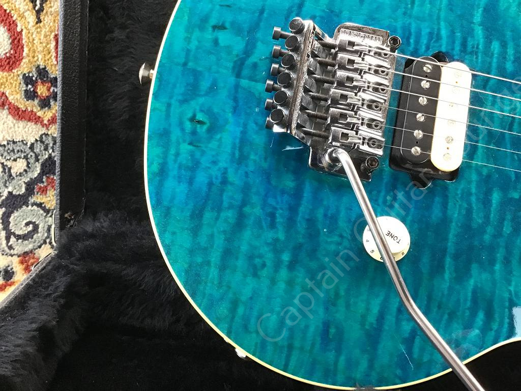 Damit die Gitarre ihre Stimmung hält, wurde sie mit Schaller Mechaniken und einem Floyd Rose Locking Vibrato ausgestattet.