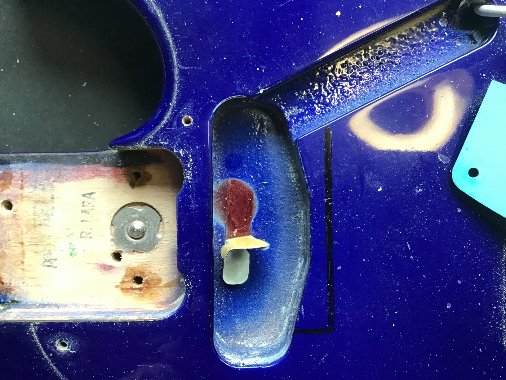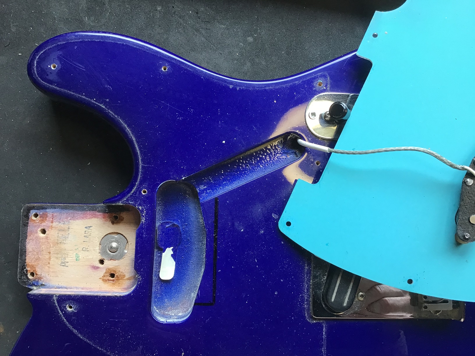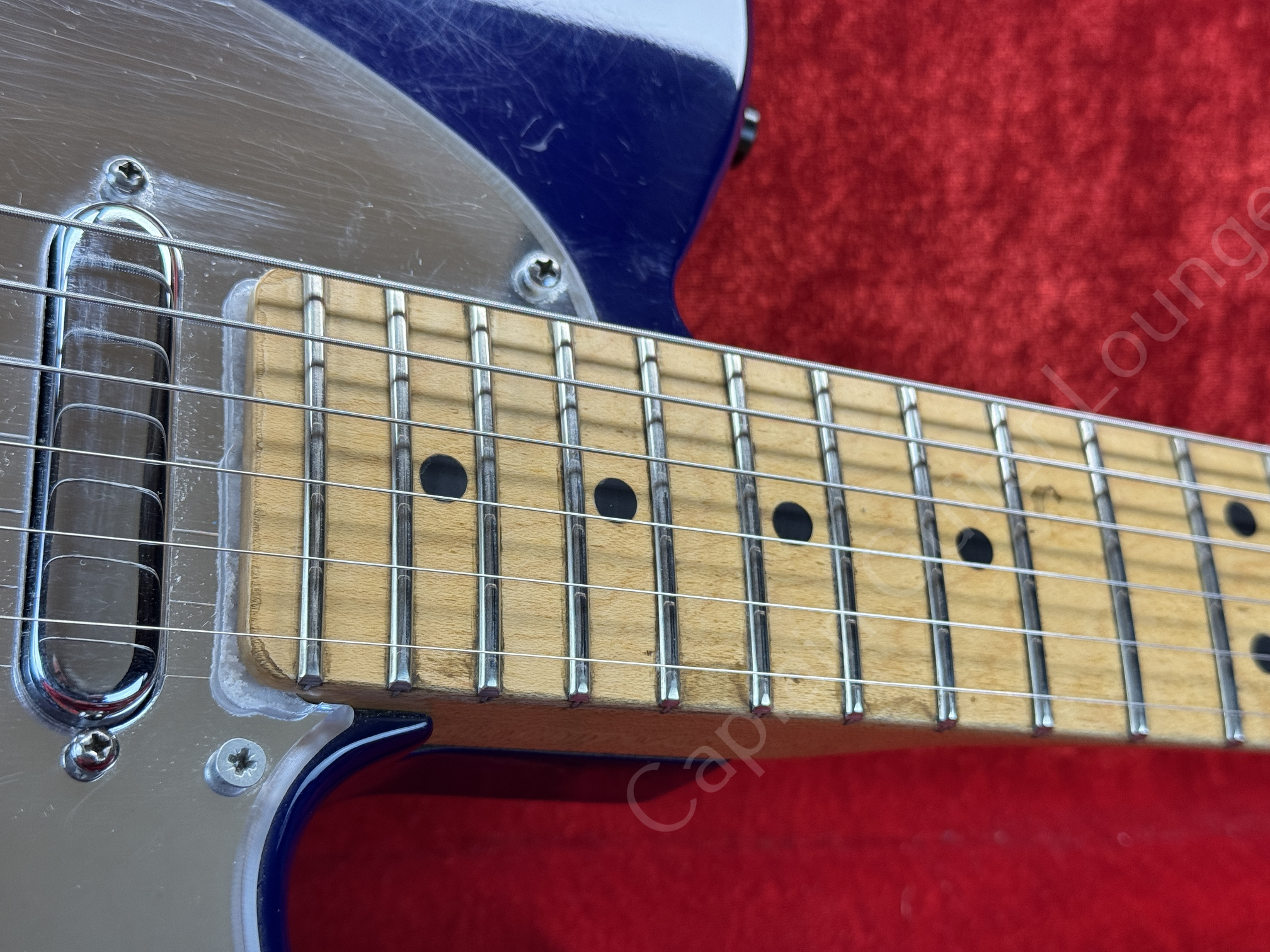 Optisch sticht das Spiegel-Pickguard (nicht original) sofort ins Auge.