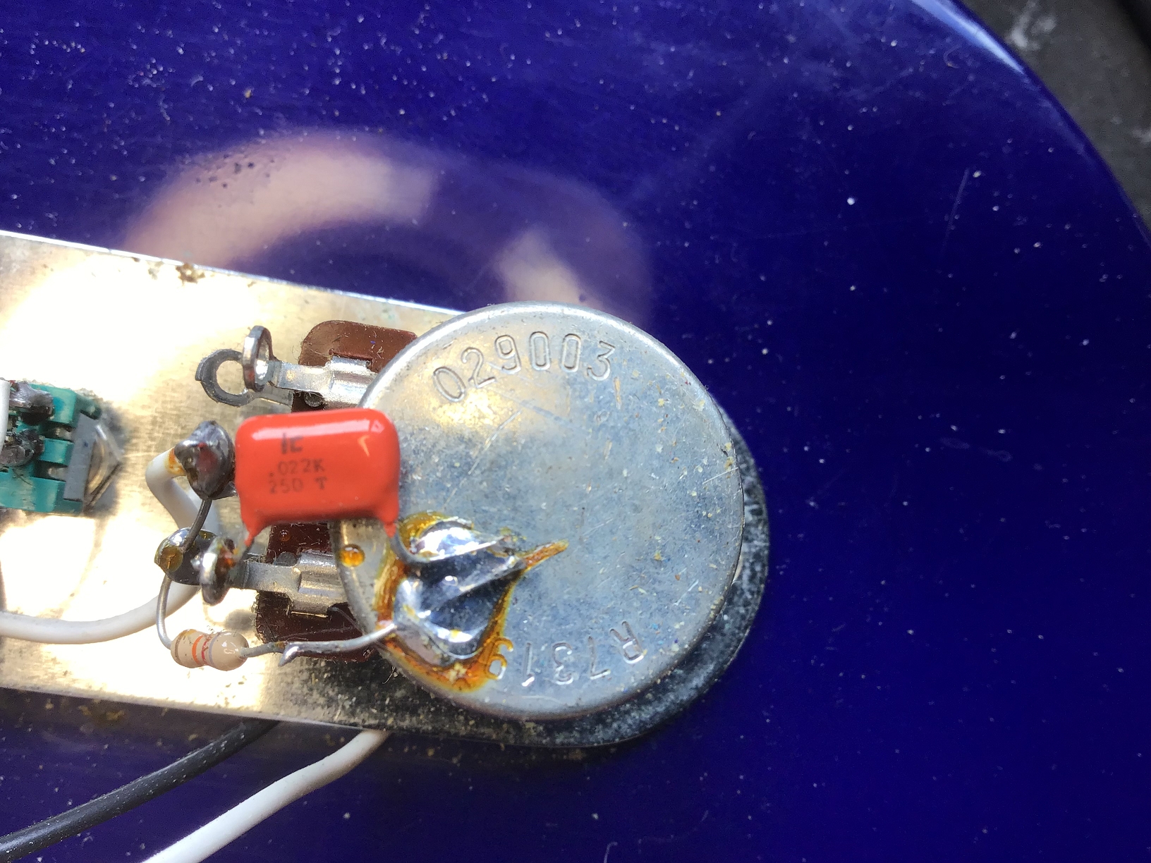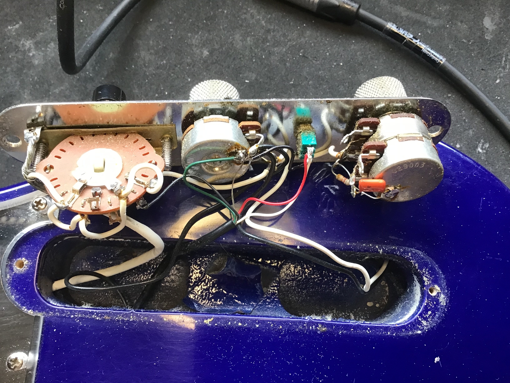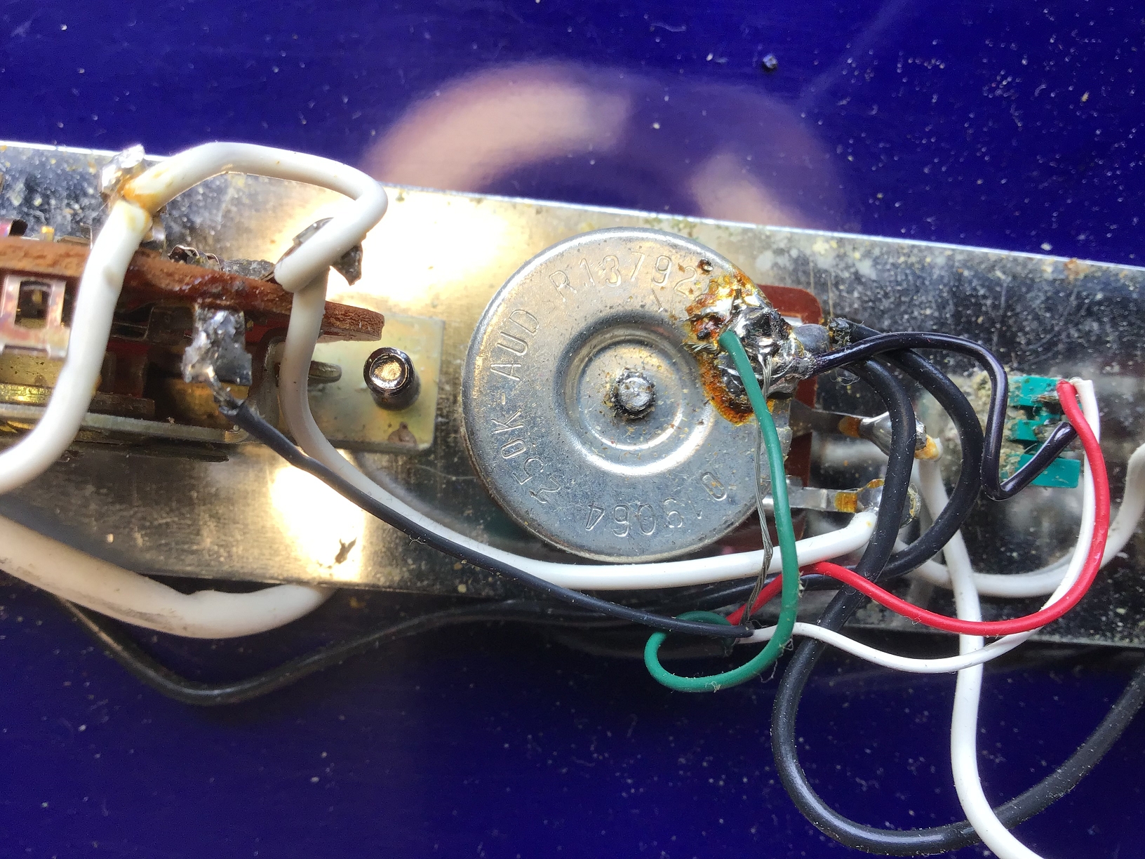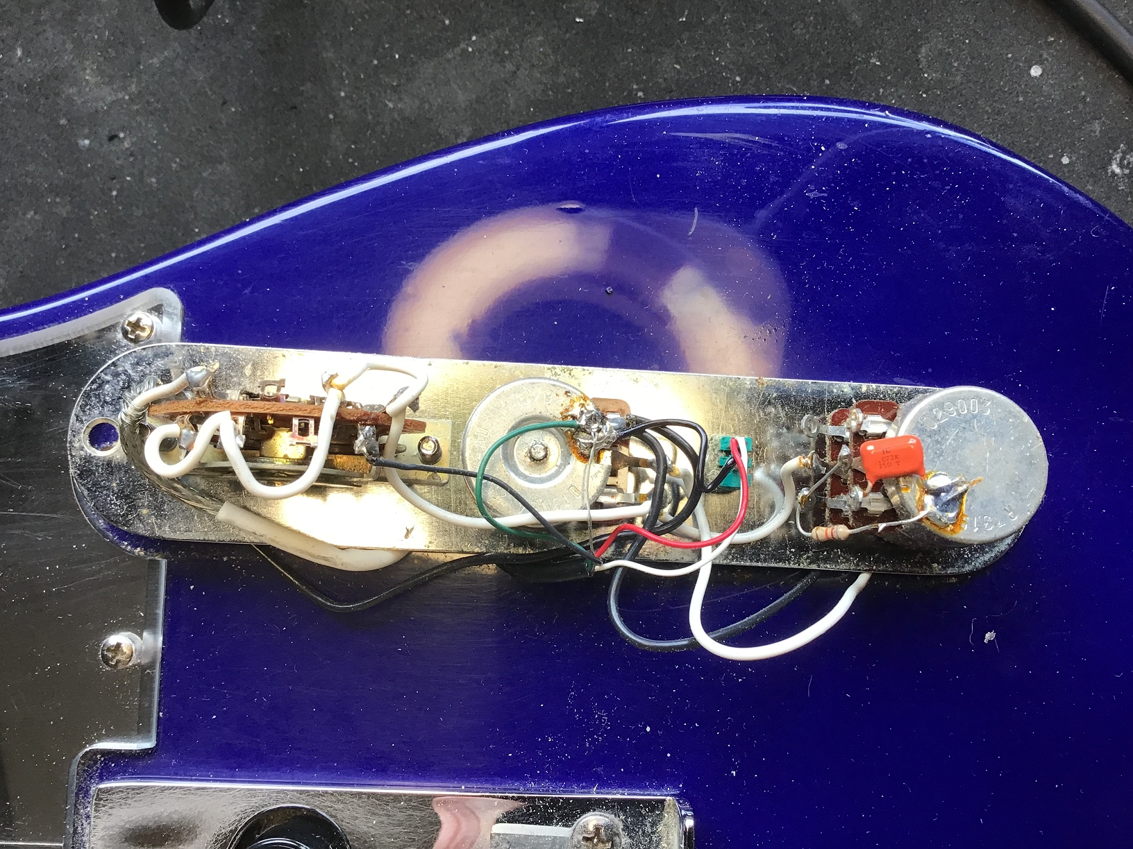 Optisch sticht das Spiegel-Pickguard (nicht original) sofort ins Auge.