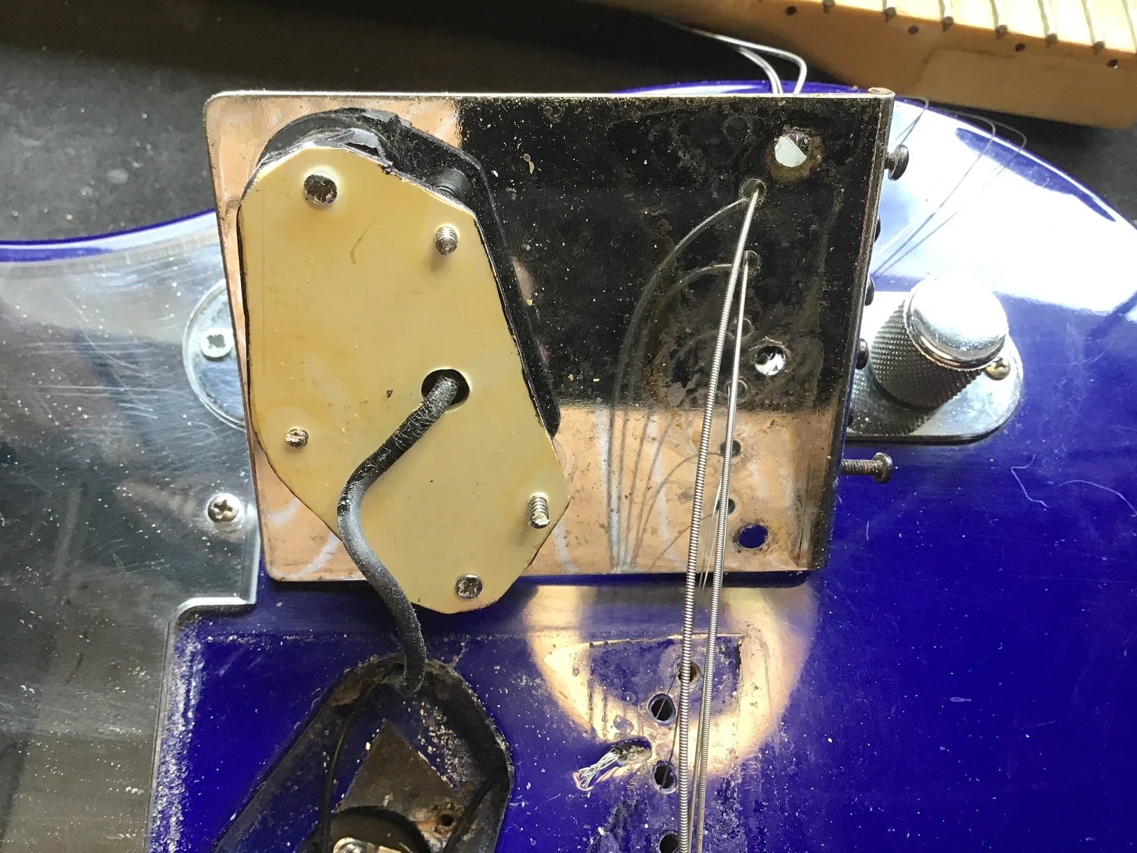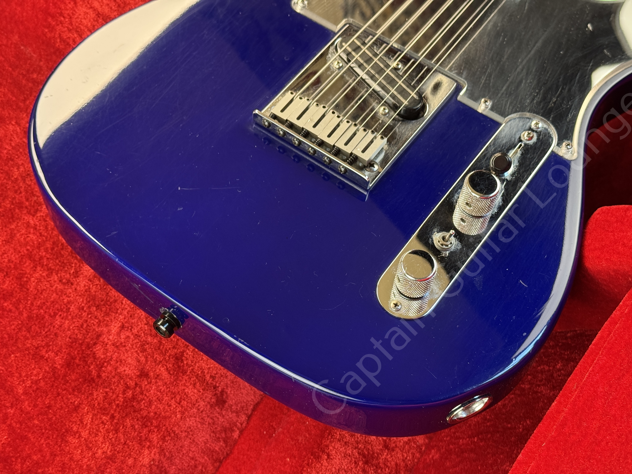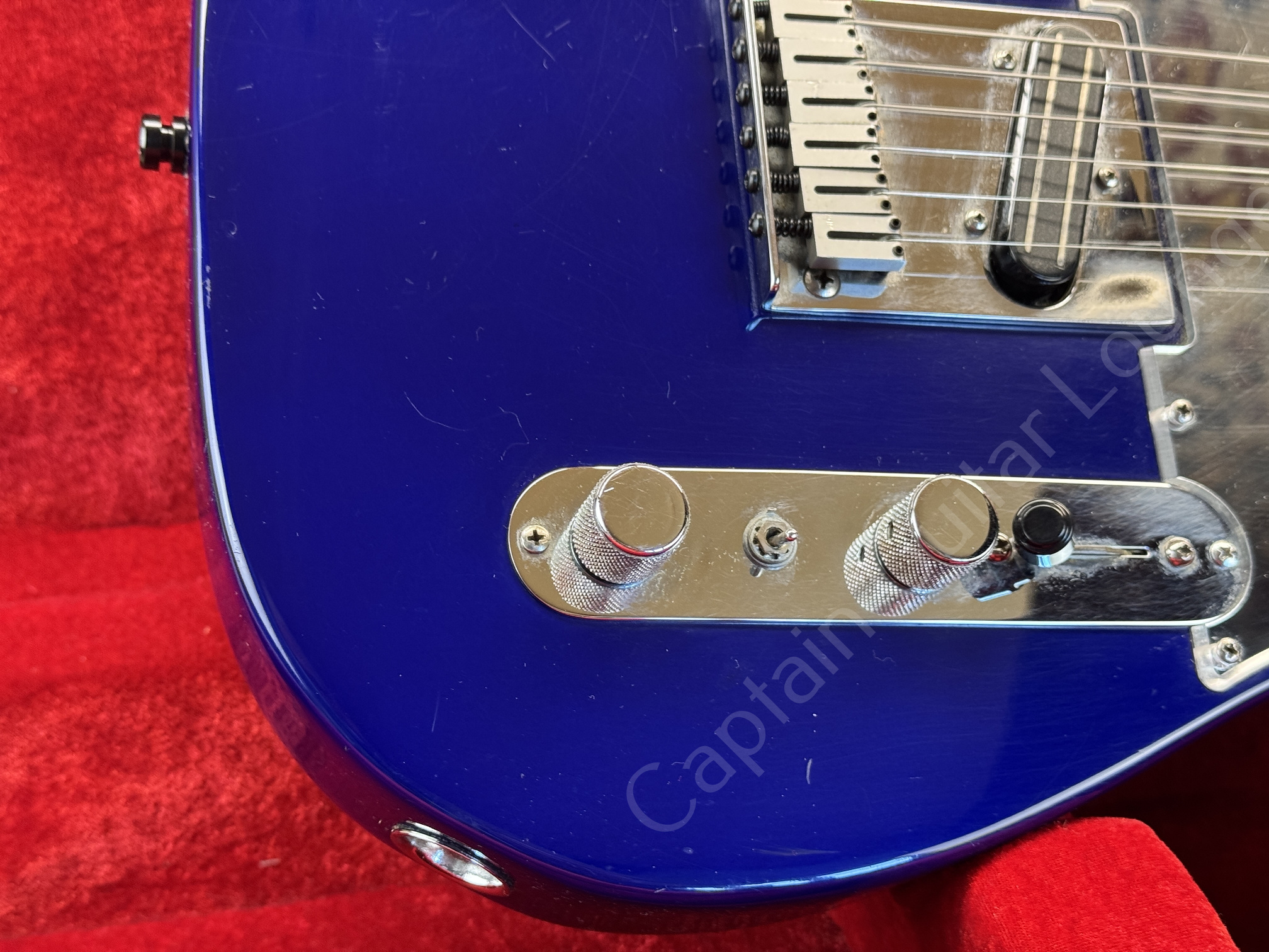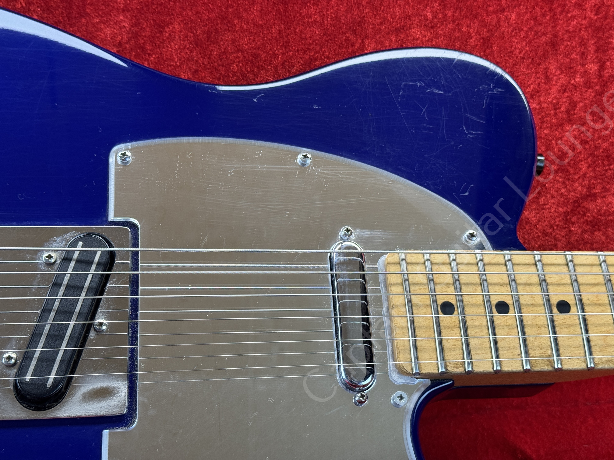 Klassische USA Standard Telecaster aus den frühen 90ern, hier in auffälligem blau-violetten Finish mit modernem Setup.