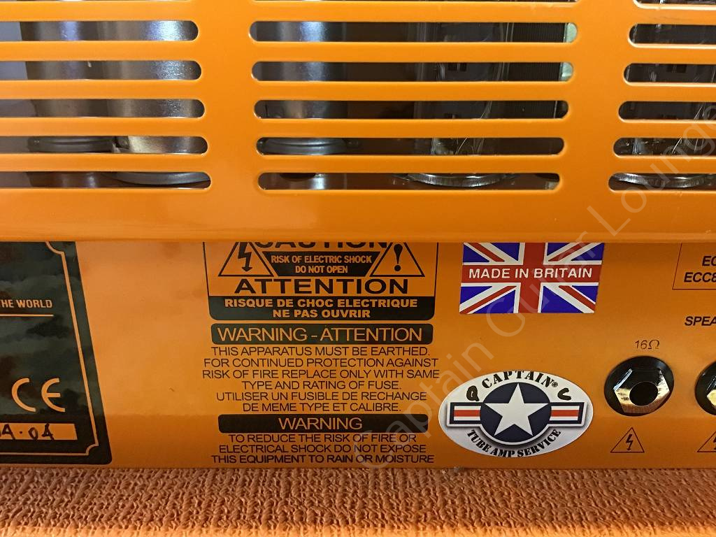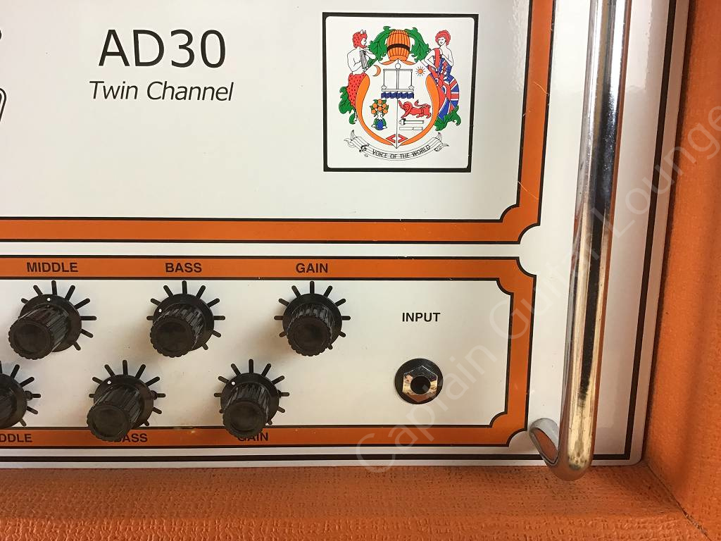 Dieser Röhrenverstärker für E-Gitarre, gefertigt in England, im Topteilgehäuse mit orangem Tolex-Bezug hat im weißen Bedienfeld noch die frühere Version in "Bilderrahmen"-Optik und ist in einem sehr guten Zustand inkl. neuer Röhren. In unsere Werkstatt hat er einen frischen Check-Up erhalten.