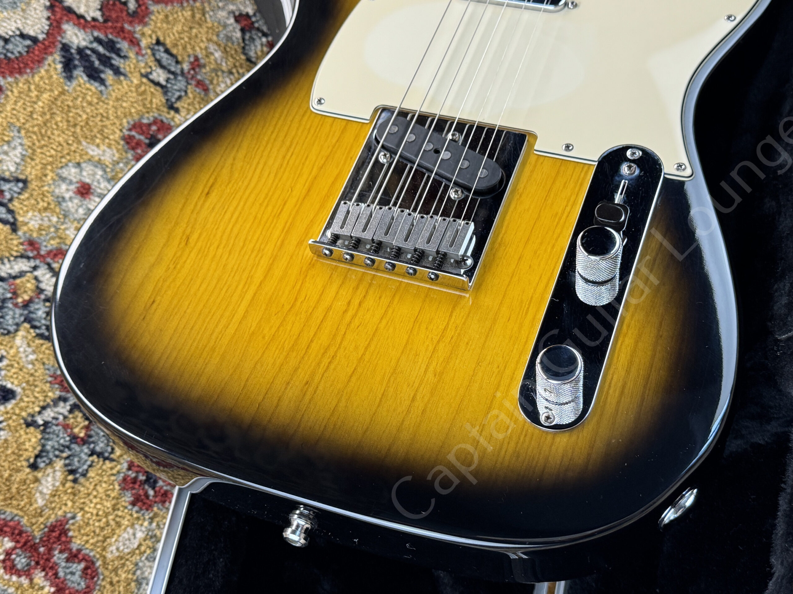 Klassische Fender USA-Telecaster aus der beliebten American Series (2000-2008) mit wunderschönem 2-Color-Sunburst-Finish und Ahorn-Griffbrett.