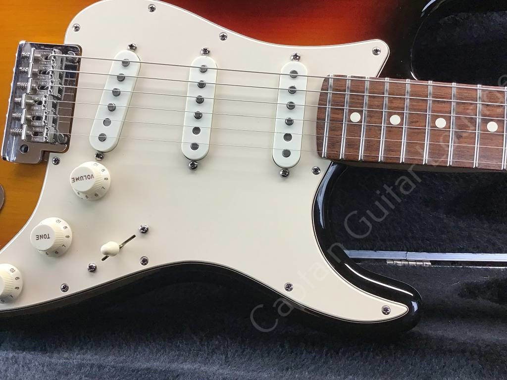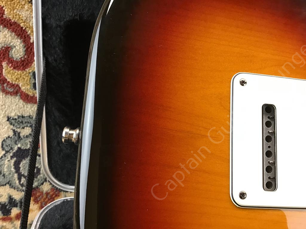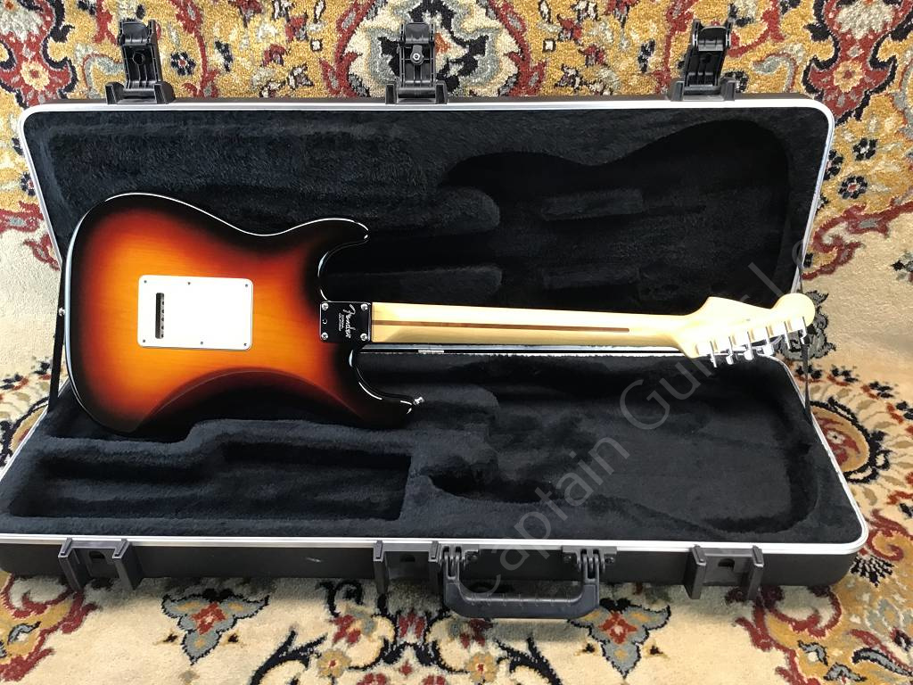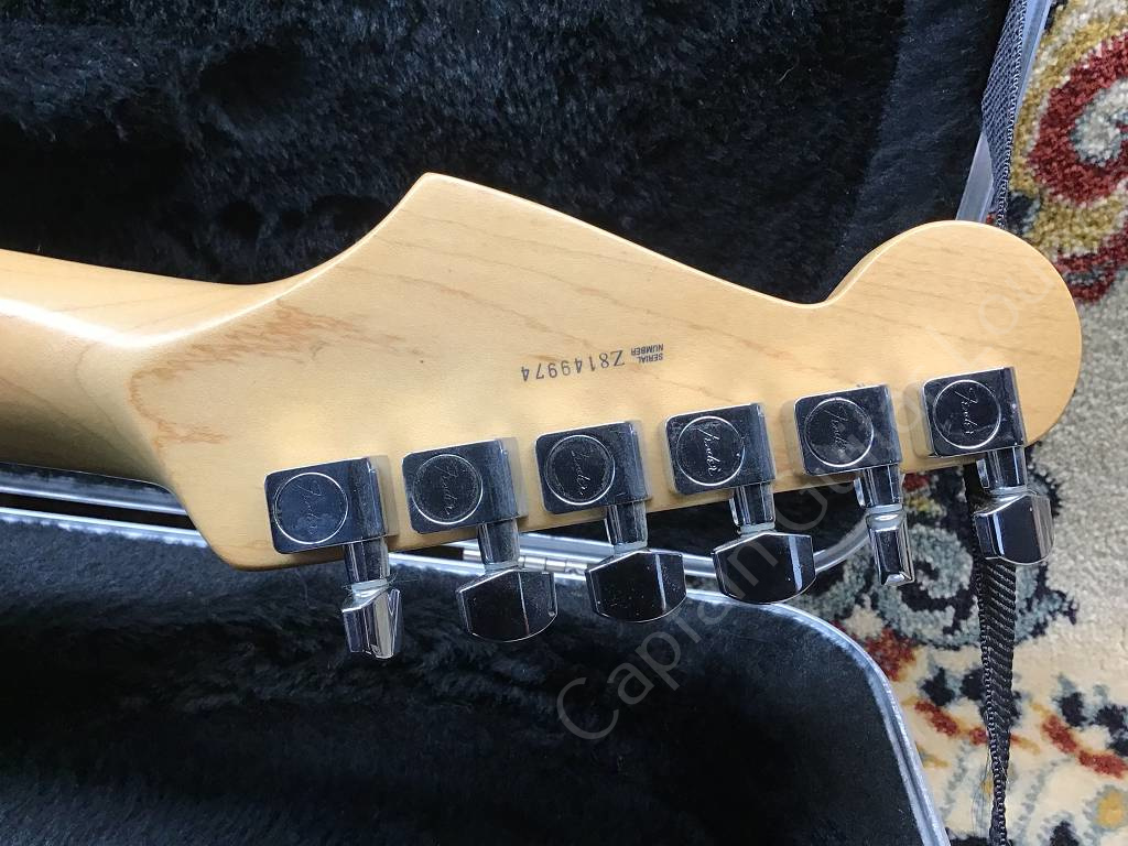 Die Fender American Standard Stratocaster aus dem Jahr 2008 ist ein frühes Modell der sogenannten "Second Series". Der Unterschied zum Vorgängermodell American Stratocaster ("Amerian Series") ist ein neuer Lack für Korpus und Hals, ein Zwei-Punkt-Tremolo mit gebogenen Stahlreitern und u.a. ein neuer Koffer.