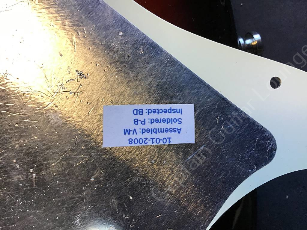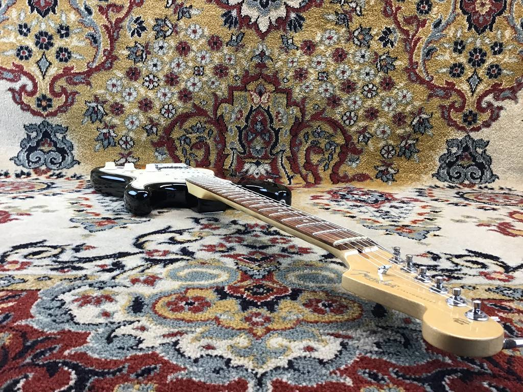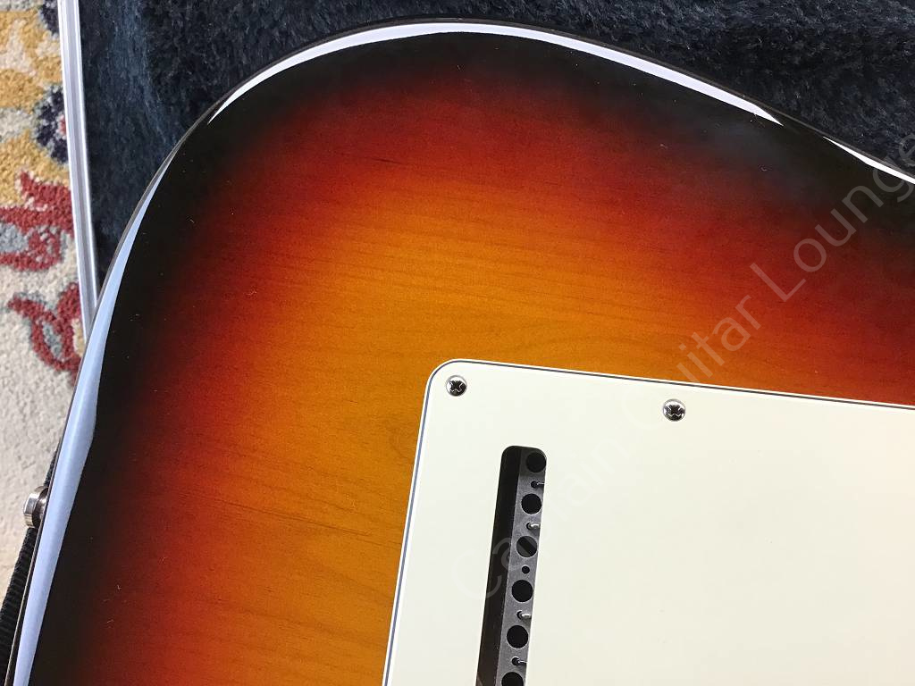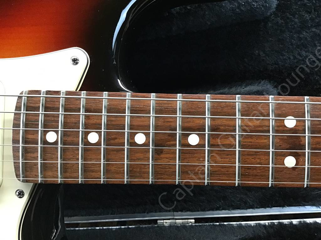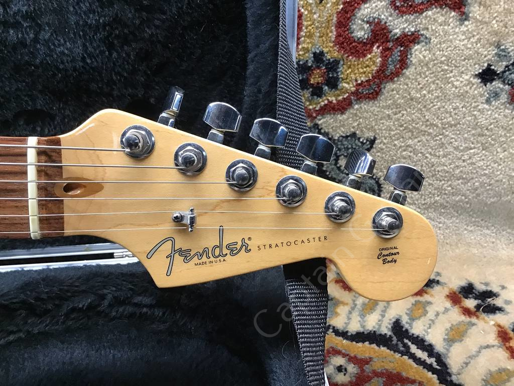 Die Fender American Standard Stratocaster aus dem Jahr 2008 ist ein frühes Modell der sogenannten "Second Series". Der Unterschied zum Vorgängermodell American Stratocaster ("Amerian Series") ist ein neuer Lack für Korpus und Hals, ein Zwei-Punkt-Tremolo mit gebogenen Stahlreitern und u.a. ein neuer Koffer.