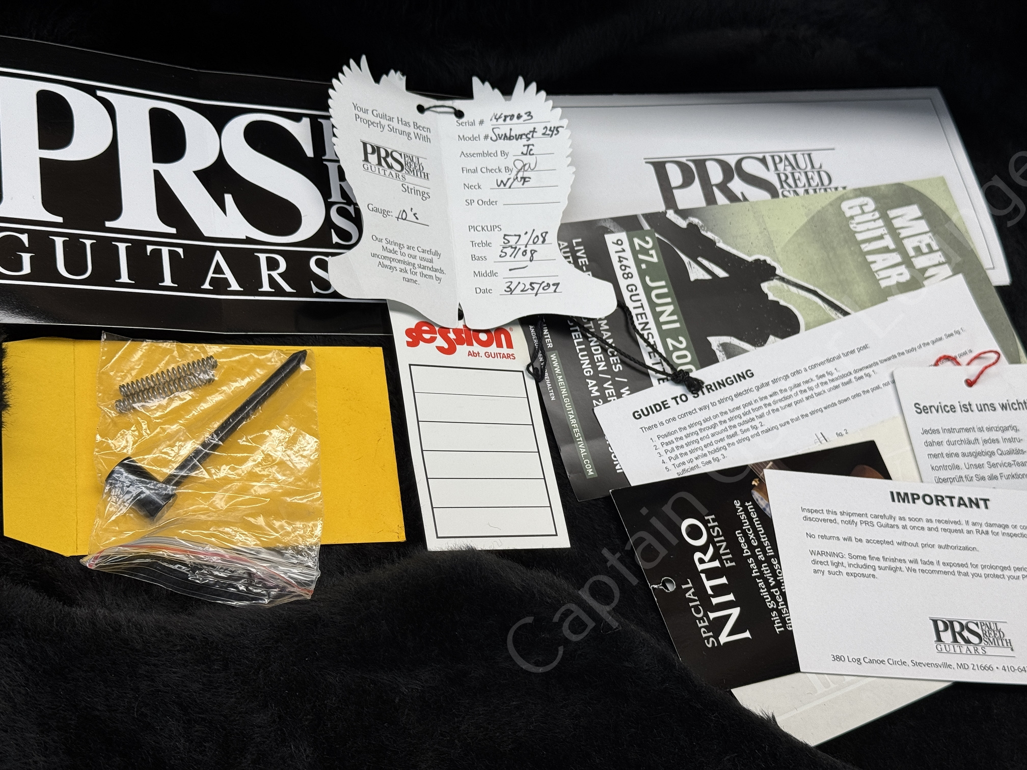 Wunderschöne PRS SC-245 aus 2009 in exzellentem Zustand. Die Gitarre besticht durch ihr feines Figured Maple Top im Smoke Burst Nitro-Finish.
