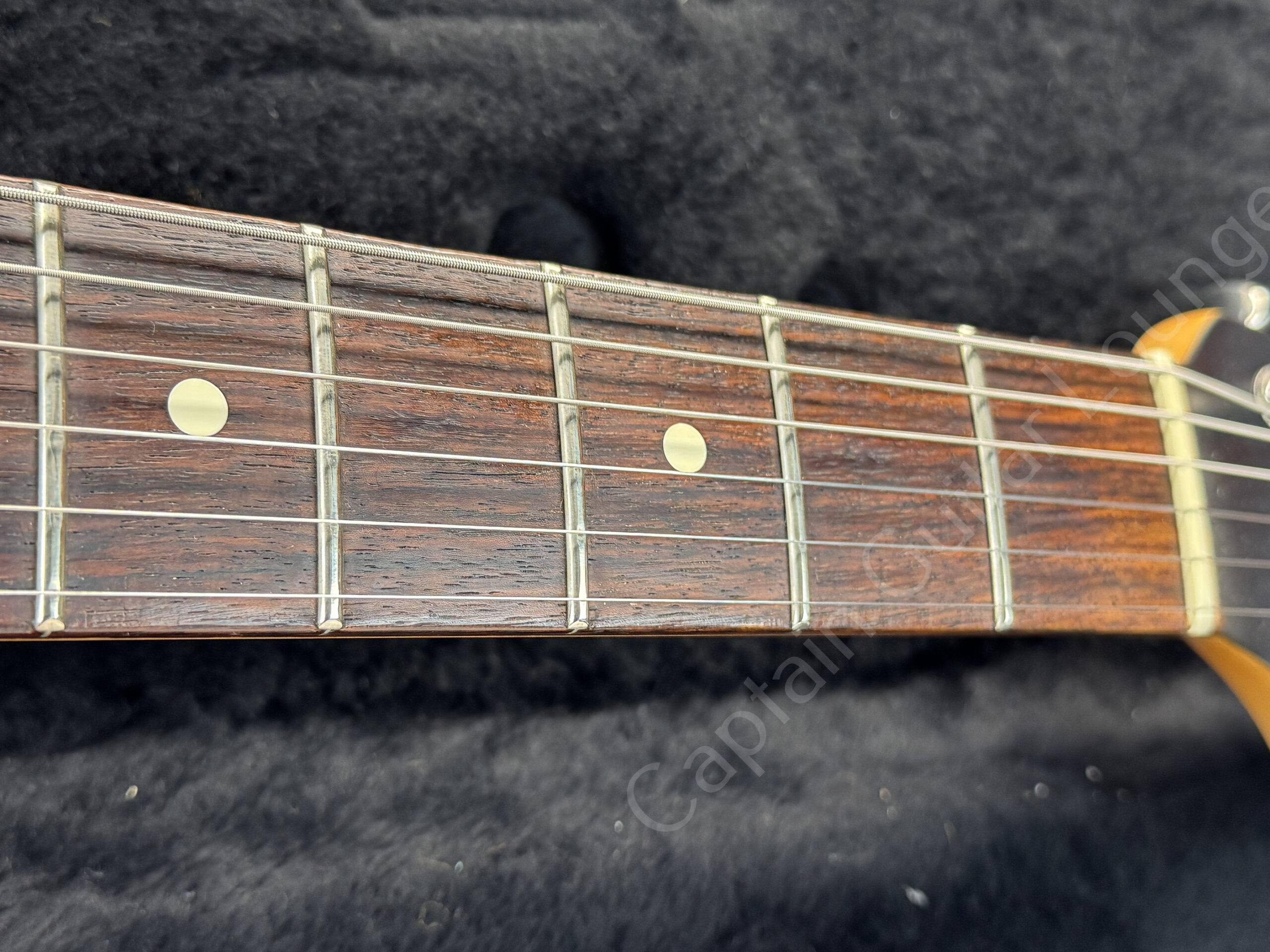 Die Ausstattung mit zwei Seymour Duncan Antiquity II Jazzmaster Pickups, American Vintage Tremolo und nur einem Volume-Regler sorgt für direkten, puristischen Sound und intuitive Kontrolle.