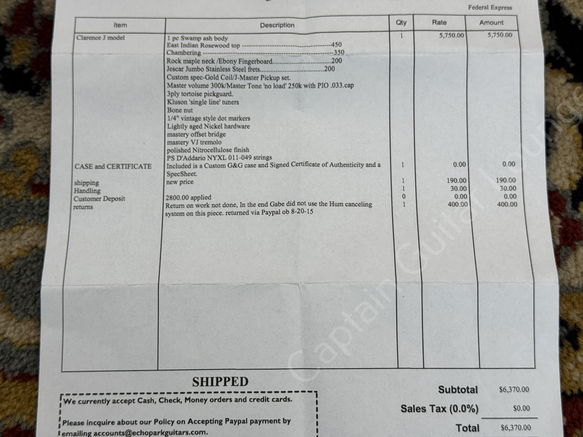 ✅ Korpus: 1-piece Swamp Ash