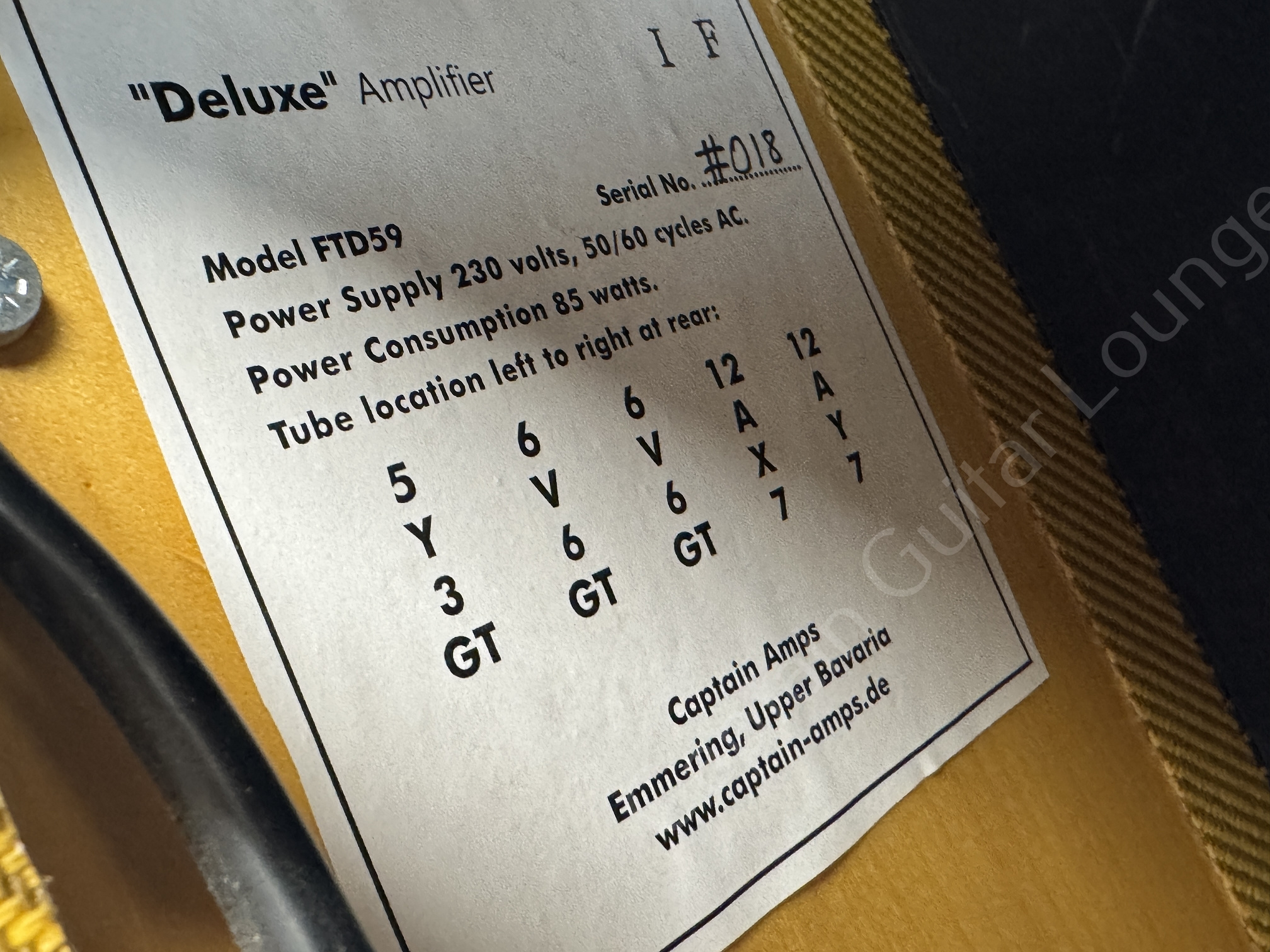 Wir bieten an einen sehr gut erhaltenen Captain FTD FiftyNine Tweed Deluxe aus dem Jahr 2019, unsere kompromisslos hochwertige Interpretation des legendären Fender 5E3 Tweed Deluxe, handgebaut mit größter Sorgfalt und erstklassigen Komponenten.