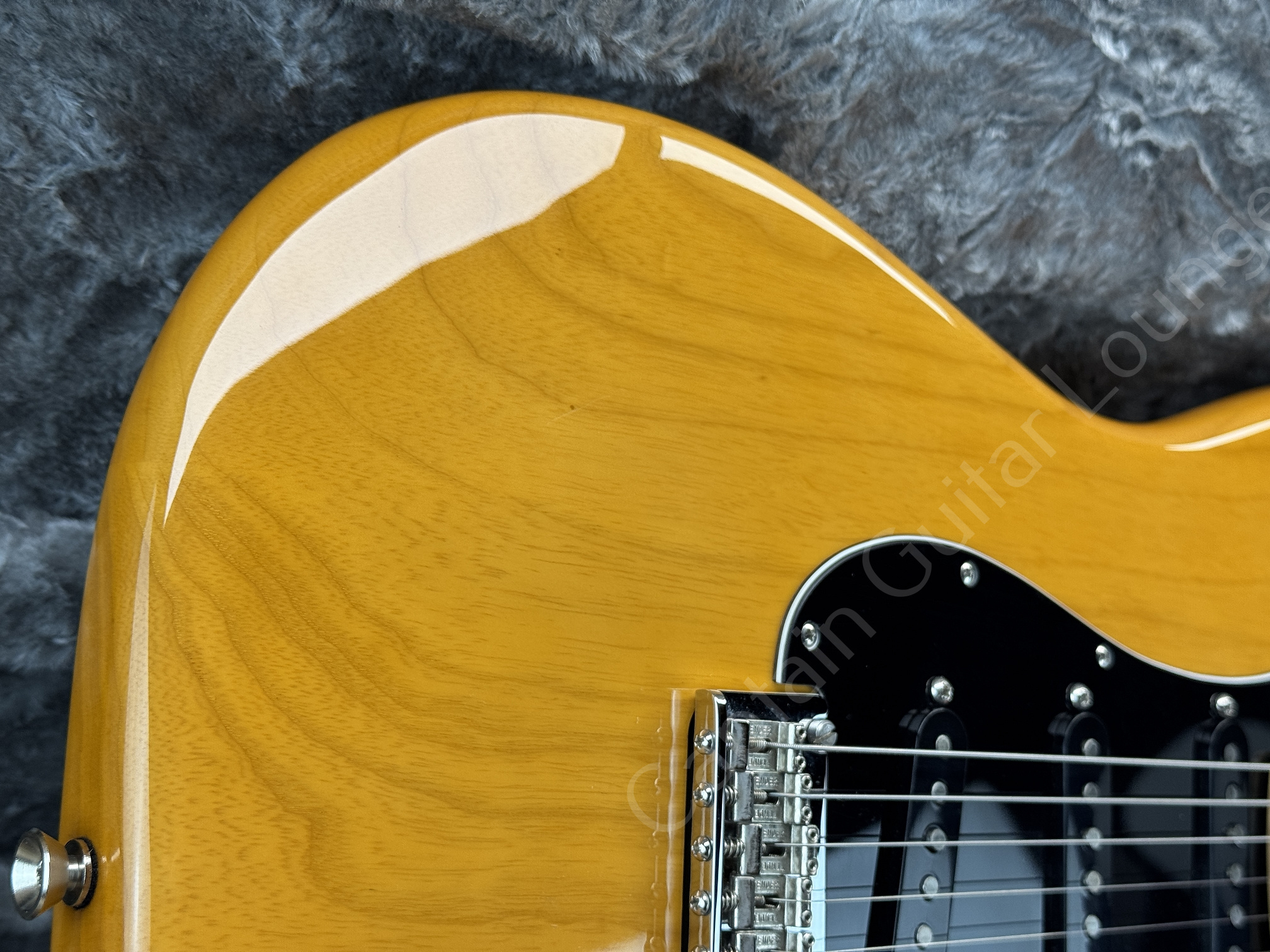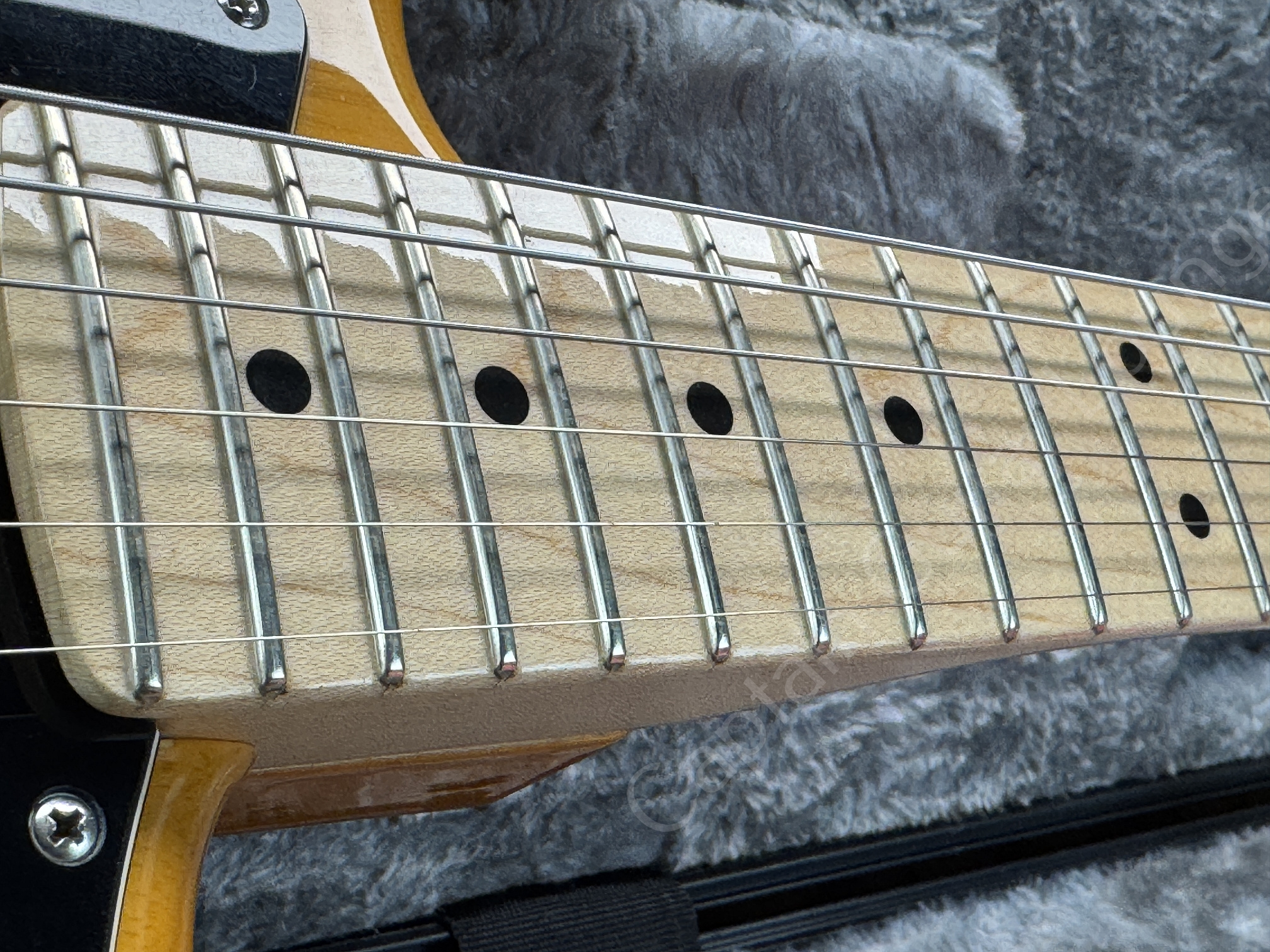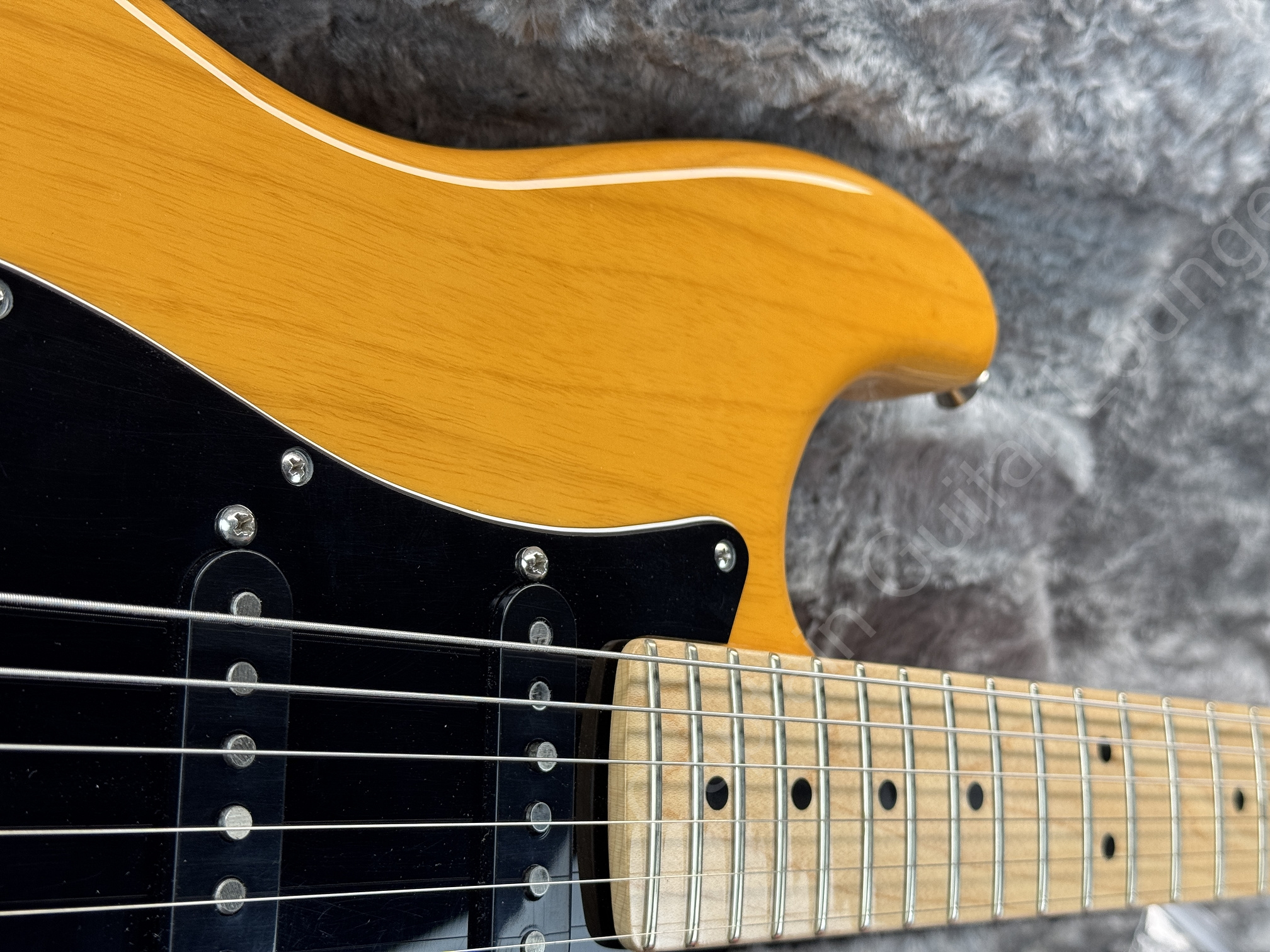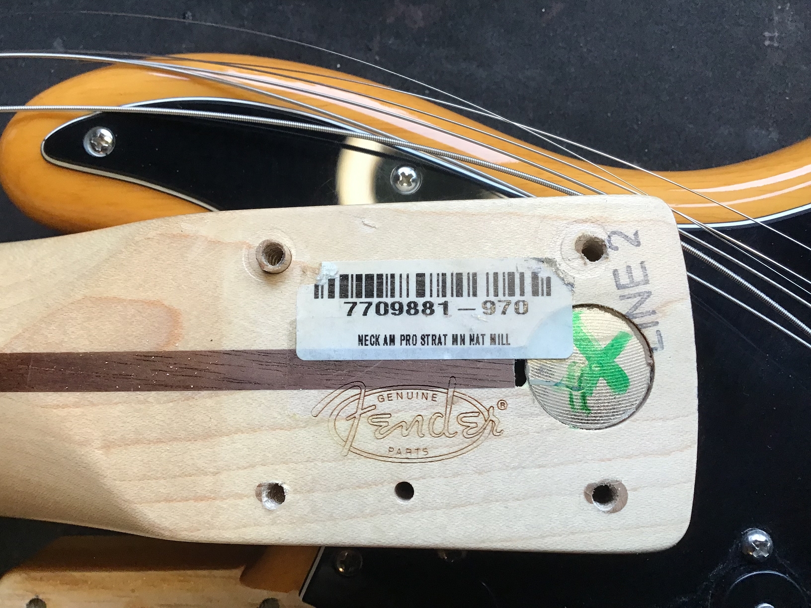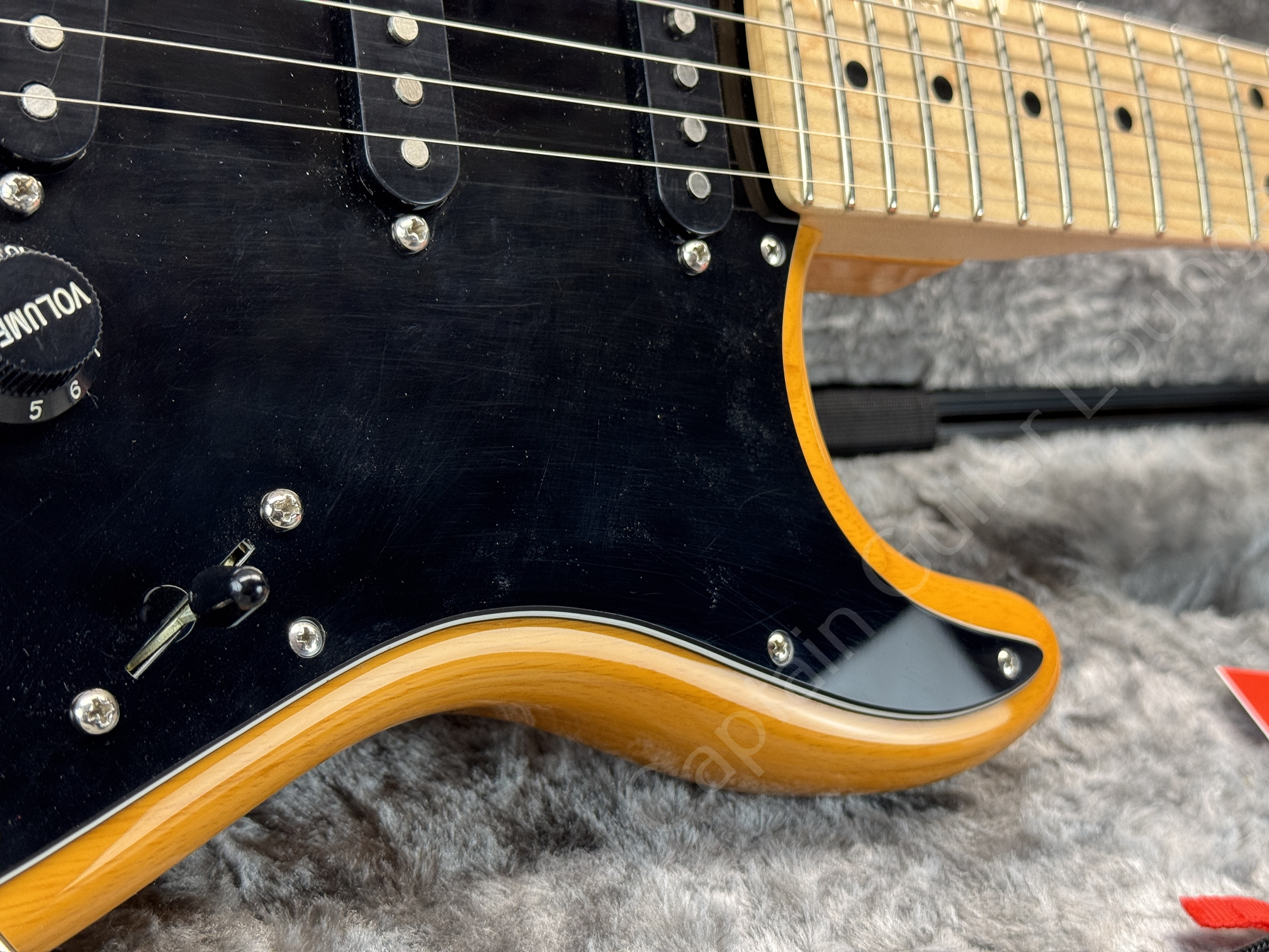 Der verbaute Fender Replacement Maple Neck (22 Bünde, 9,5" Radius) bietet zeitgemäße Bespielbarkeit mit komfortabler Saitenlage und präzisem Bending. Der originale Hals (S/N US18080253) ist nicht mehr vorhanden.