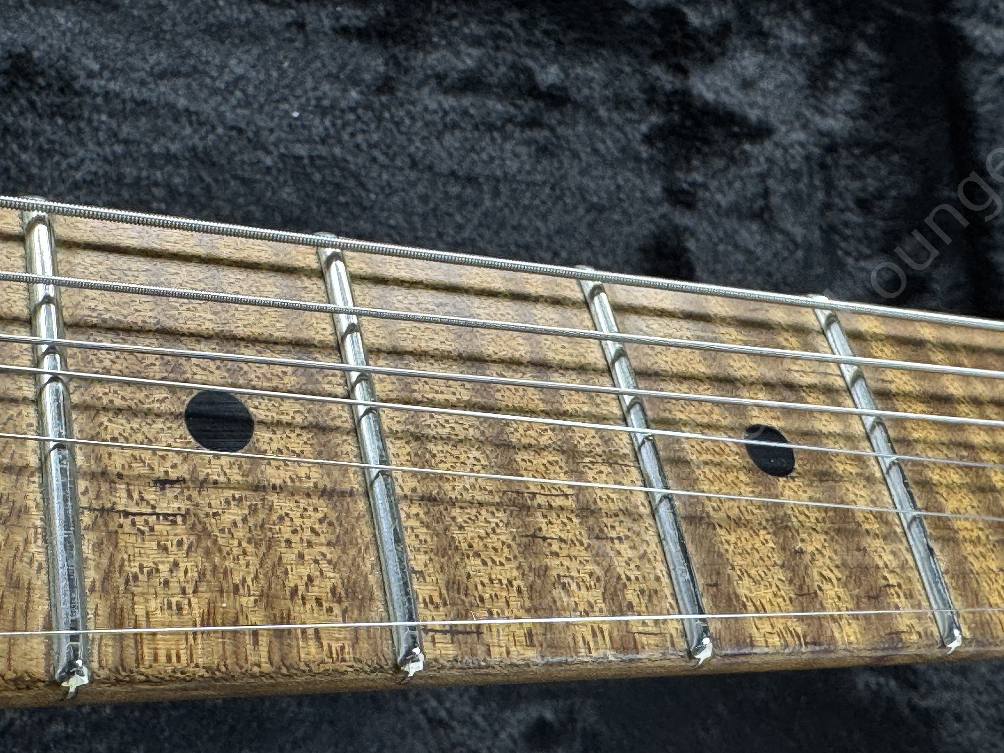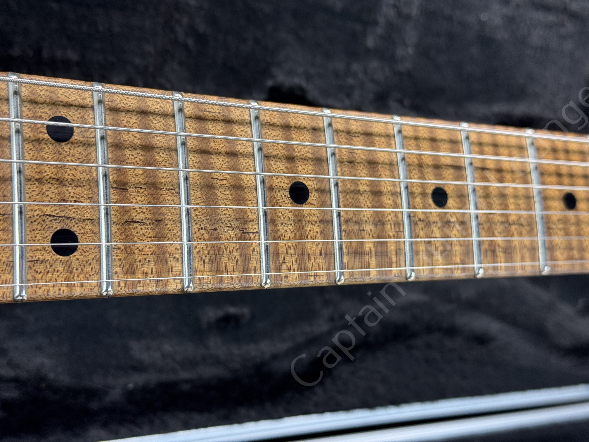 Der roasted Maple Master Grade Neck mit 12" Radius und Jescar Frets sorgt für erstklassige Bespielbarkeit, während hochwertige Hardware und Pickups für vielseitige Sounds von glasklar bis fett sorgen. Die Gitarre stammt aus 1. Hand und kommt komplett mit Case, COA und Spec Sheet.