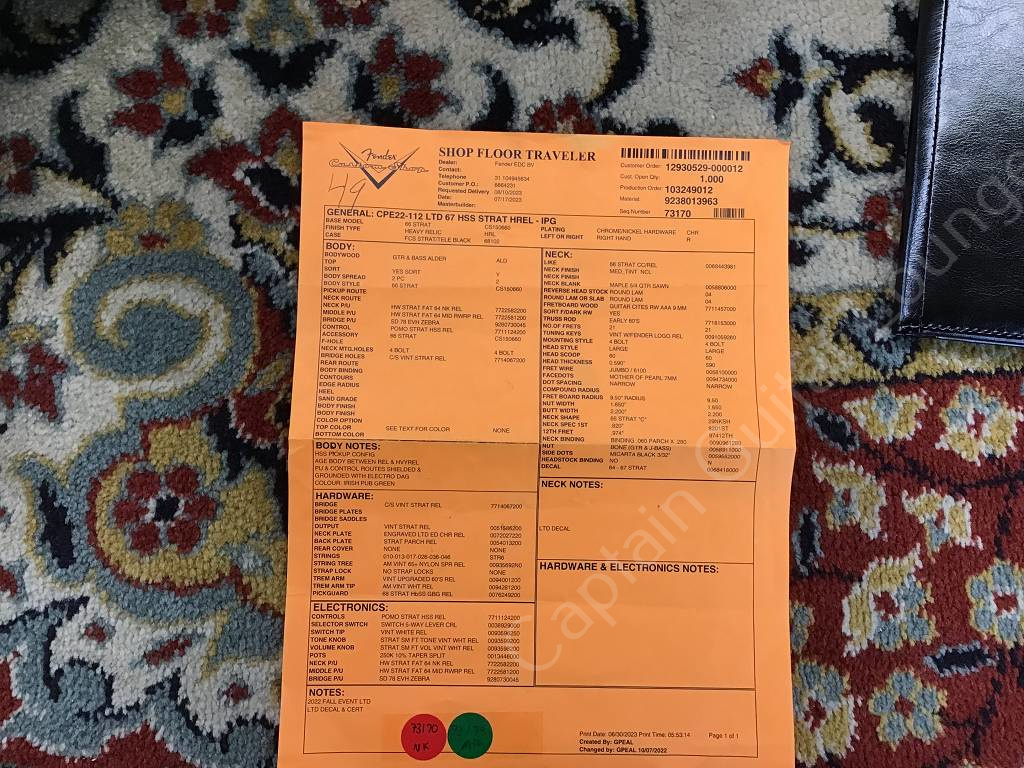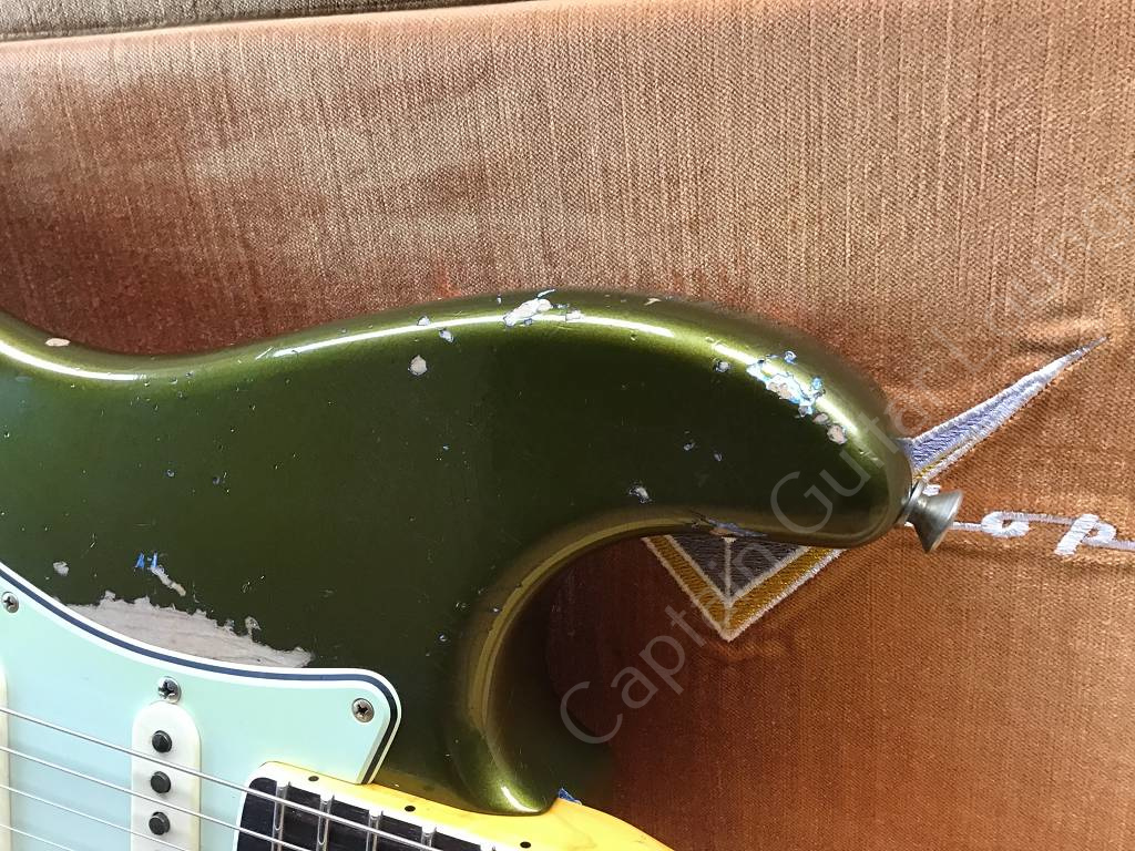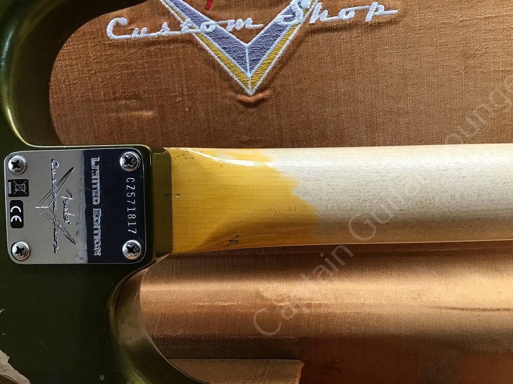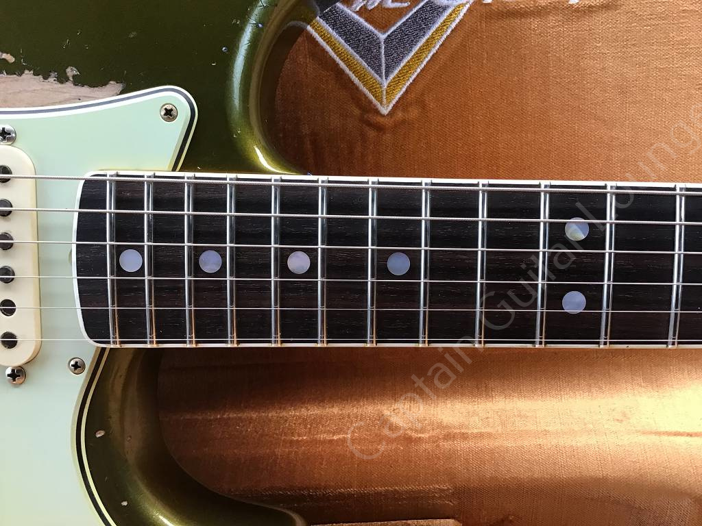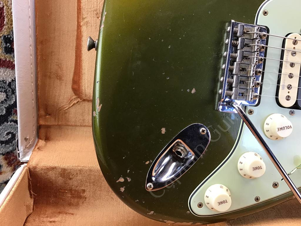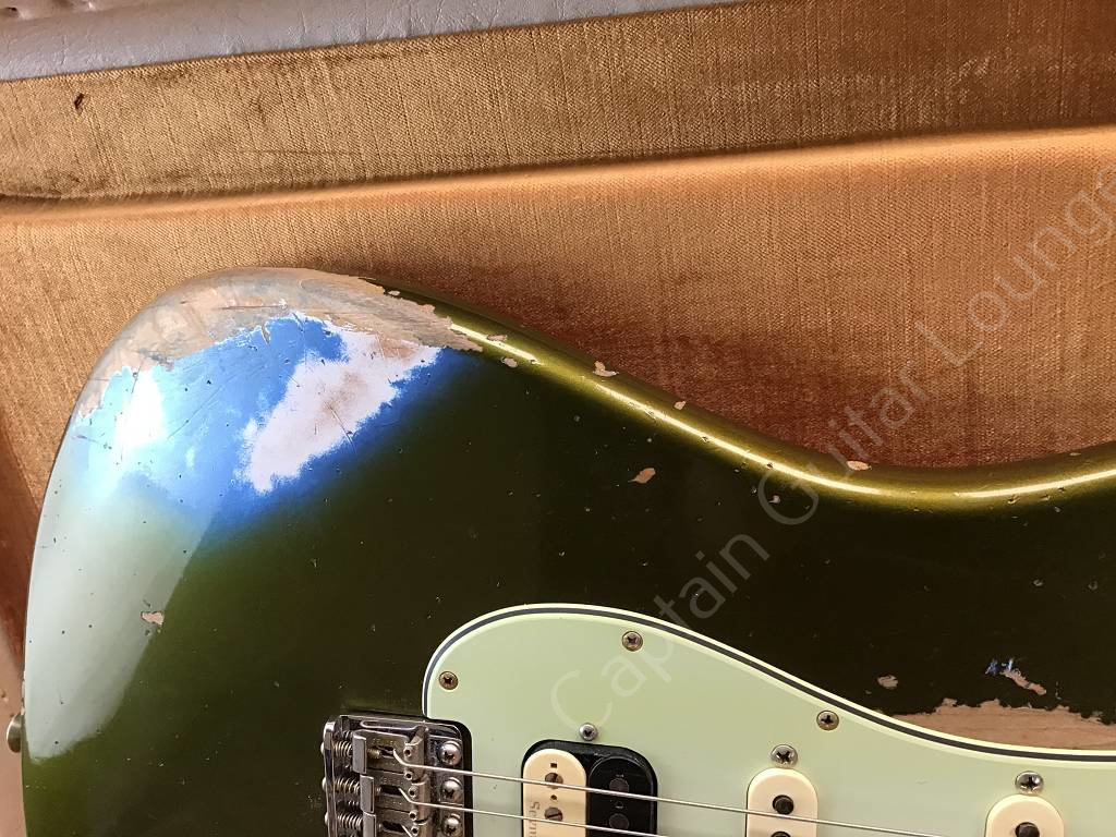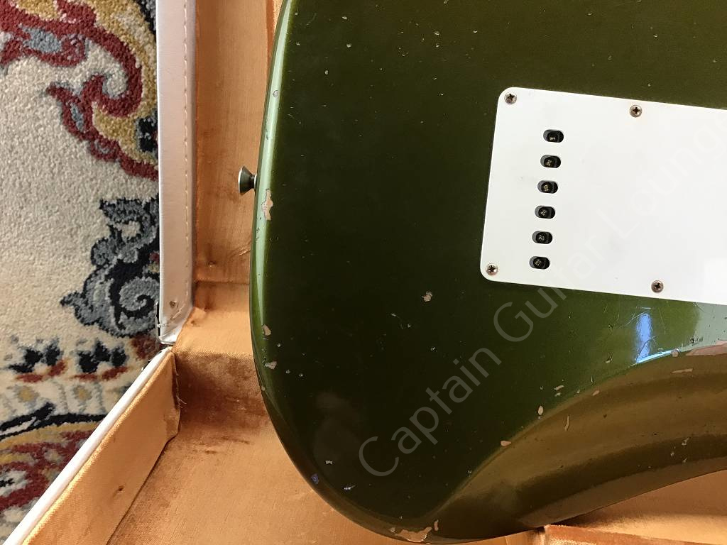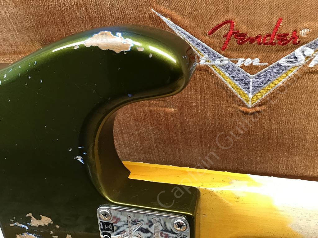 Mit dieser LTD 67 HSS Strat HRE in Irish Pub Green hat der Fender Customshop eine echte Rockmaschine geschaffen. Diese Gitarre ist ein Einzelstück aus einer Bestellung im Rahmen der 2022 Fall Event Limited Edition. Der Ahornhals mit großer Kopfplatte und Transition Decal hat ein Palisander Griffbrett, welches mit einem weißen Binding versehen ist. Als Tonabnehmer dienen handwound fat 64 Strat-PUs in der Hals- und Mittel-Position sowie ein Seymour Duncan 78 EVH Zebra Humbucker in der Steg-Position, dadurch ist sie klanglich sehr vielseitig. Von typischen Strat-Sounds bis ordentlich rockig ist alles drin. Die seltene Farbe Irish Pub Green hat ein geschmackvolles und nicht übertriebenes Heavy Relic erhalten. Das Custom Shop Decal auf der Kopfplatten-Rückseite und die Halsplatte haben zusätzlich einen Limited Edition Schriftzug.