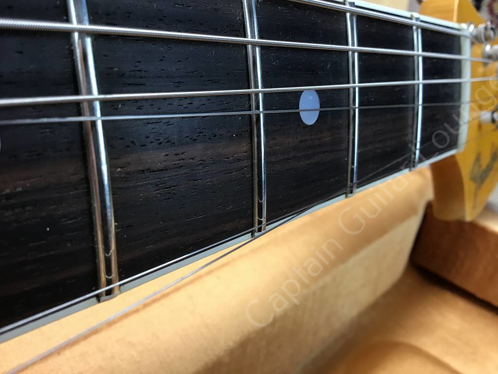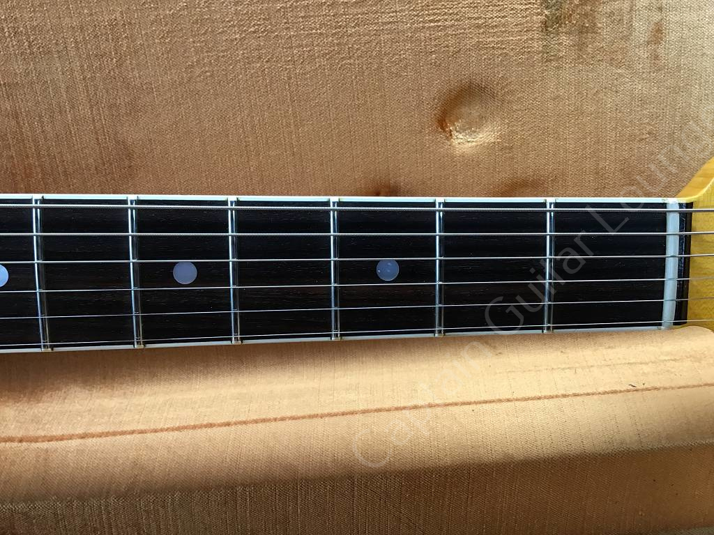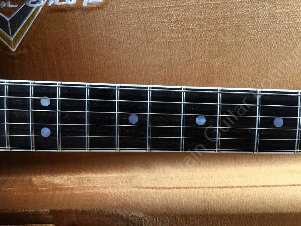 - Griffbrett: Palisander (round laminate) mit Halsbinding und Pearl Dot Inlays