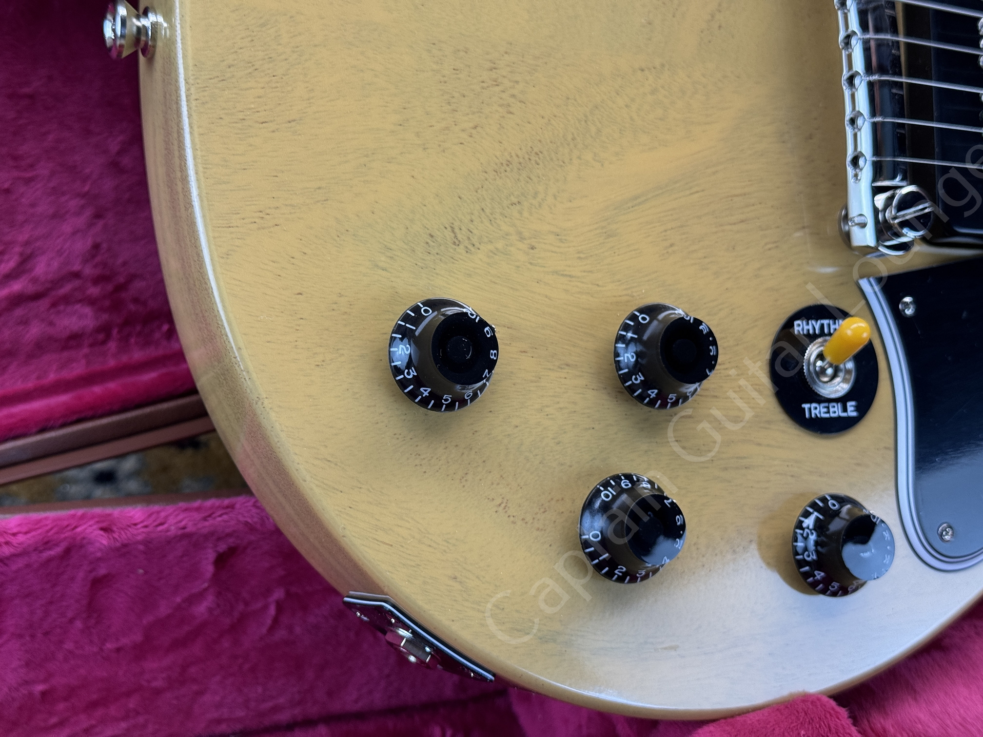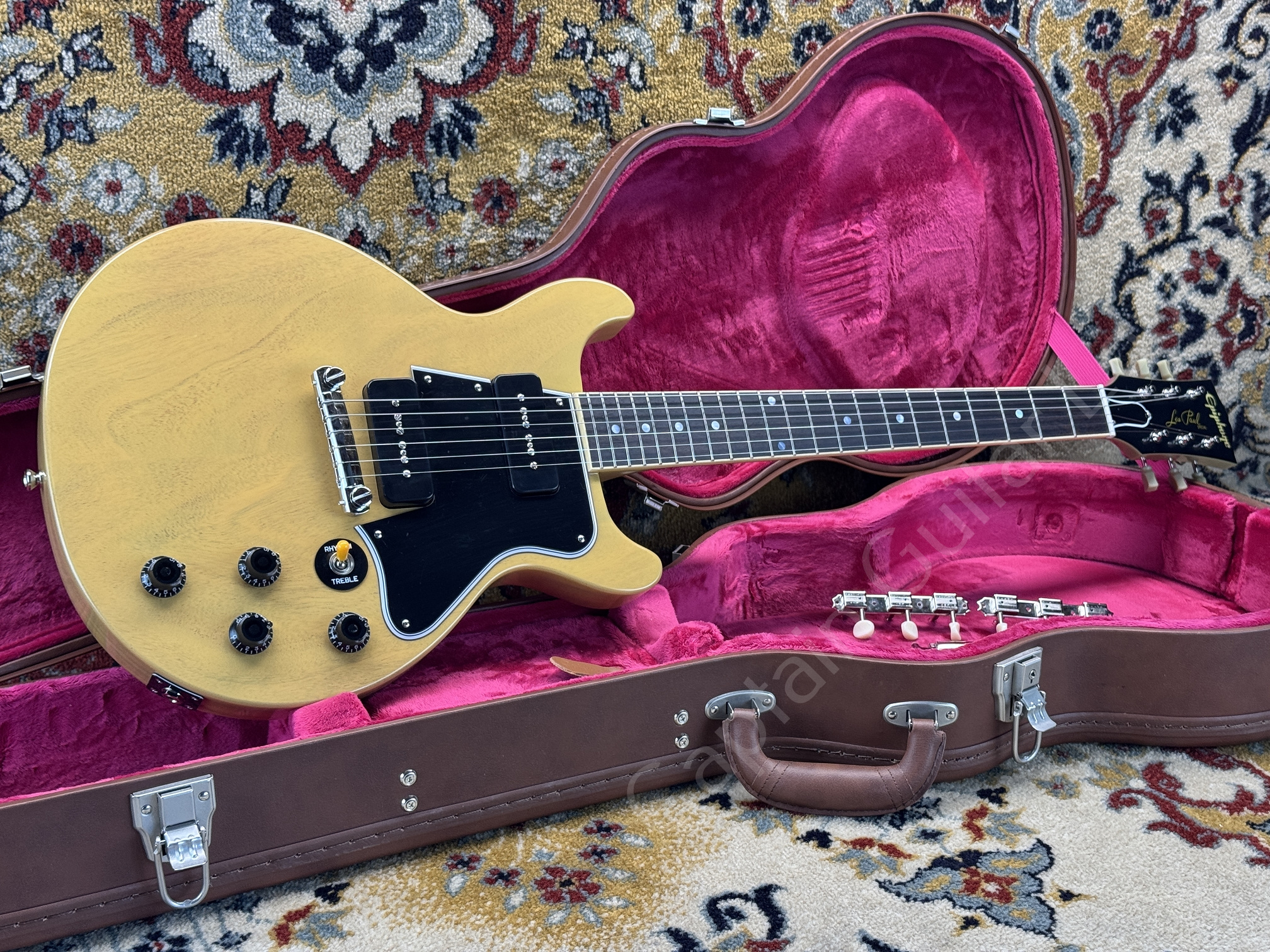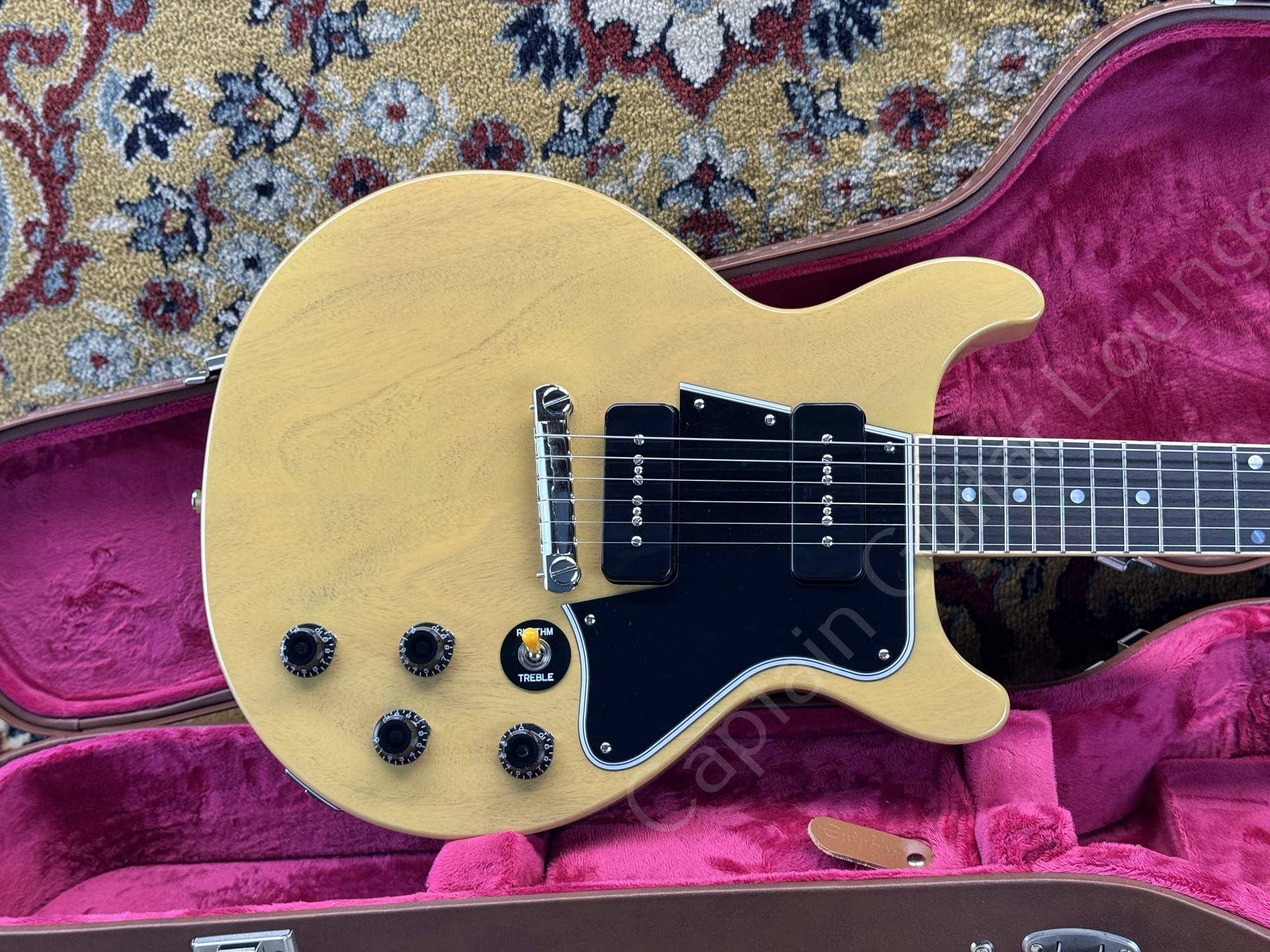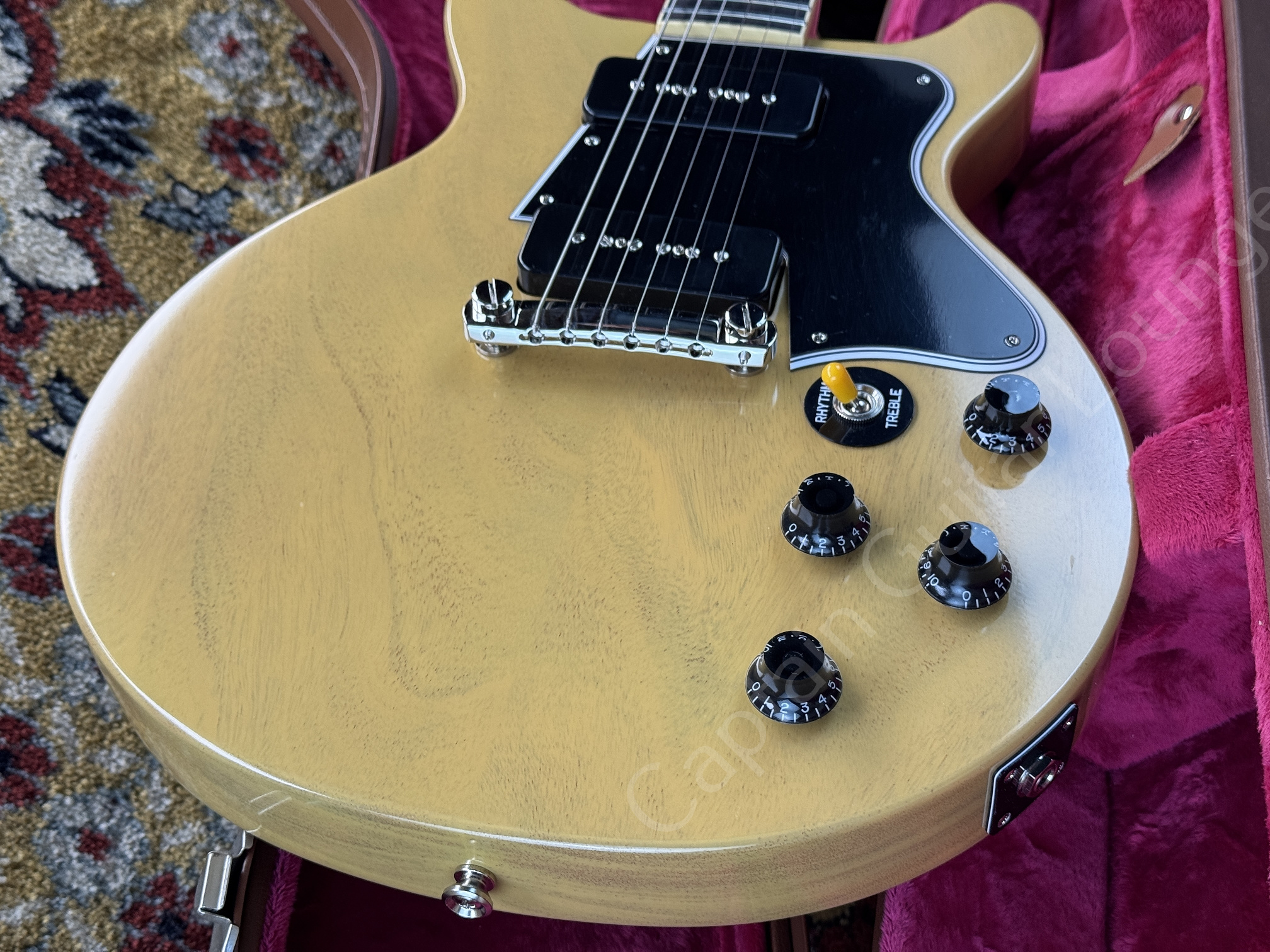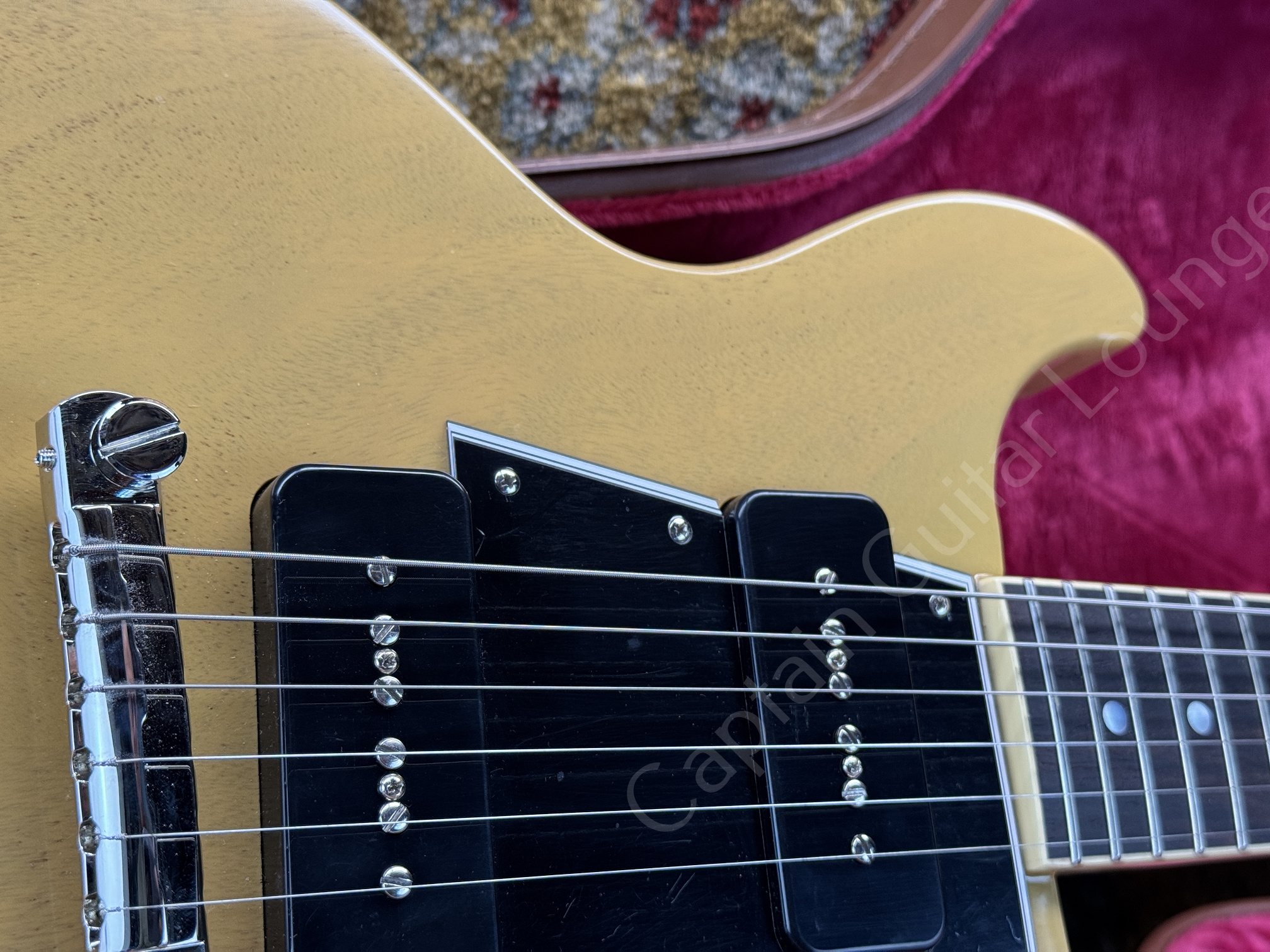 Dieses Reissue-Modell aus 2025 kommt im klassischen TV Yellow Finish und ist mit Gibson Custom USA P-90 Soapbar Pickups ausgestattet. Die Gitarre stammt aus erster Hand.