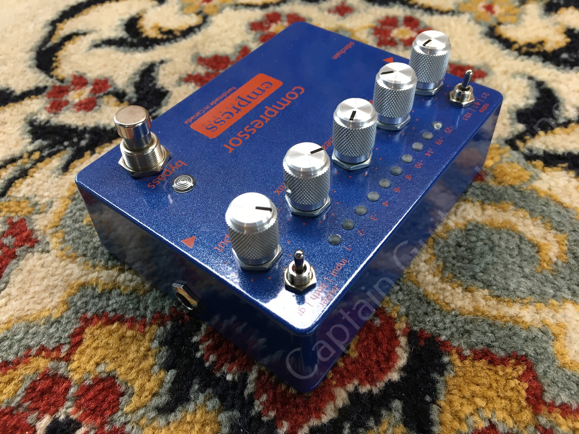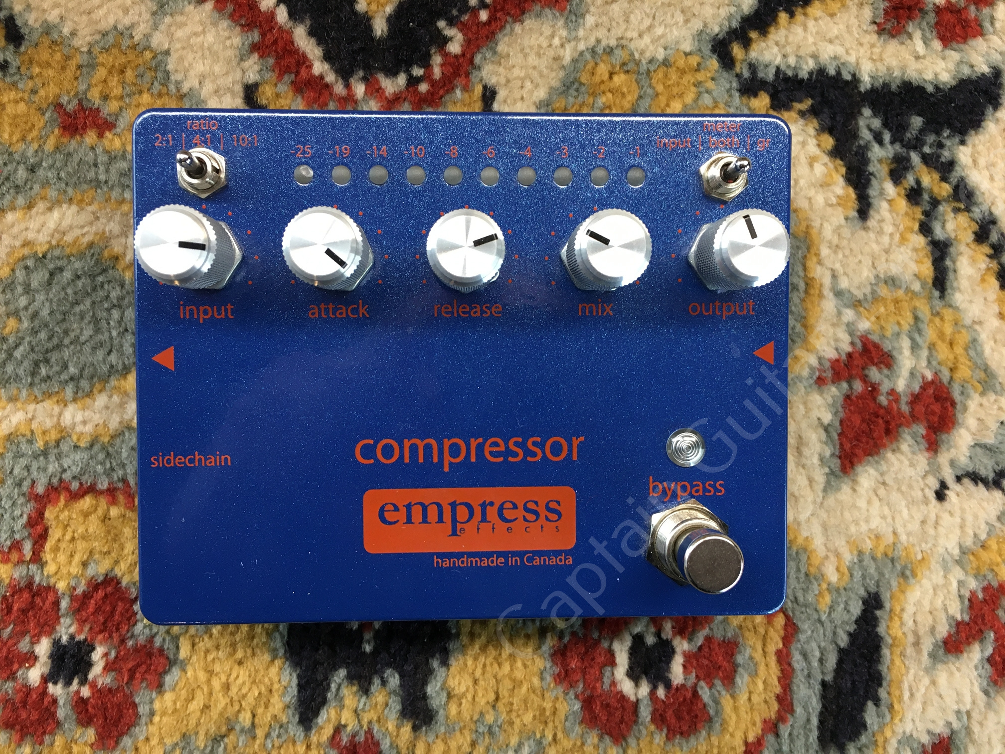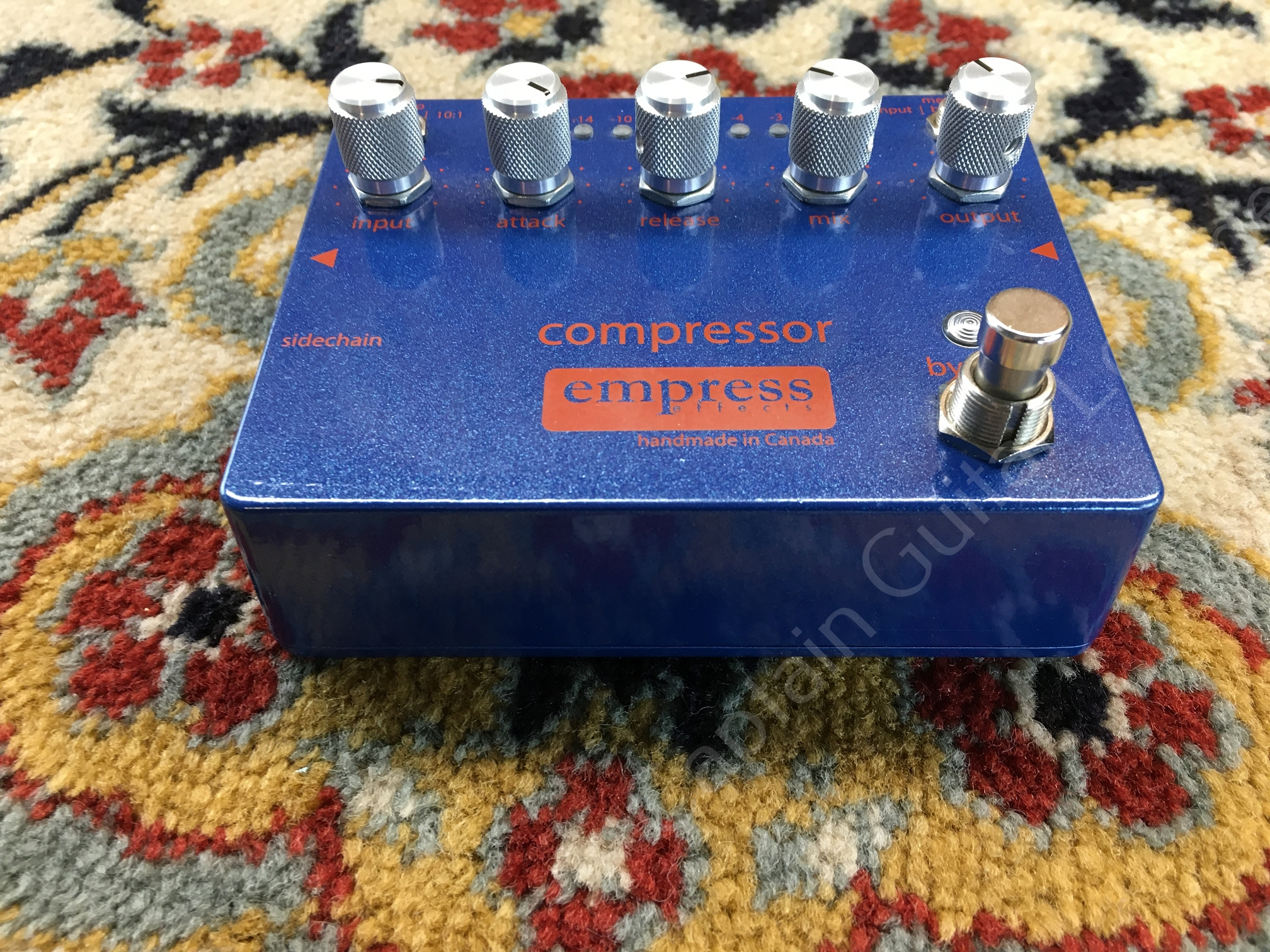 All analogue compressor pedal with controls for ratio, input, attack, release, mix & output with super bright multi-colour LEDs to monitor input, output & gain reduction with the added bonus of a sidechain input for a higher degree of control.