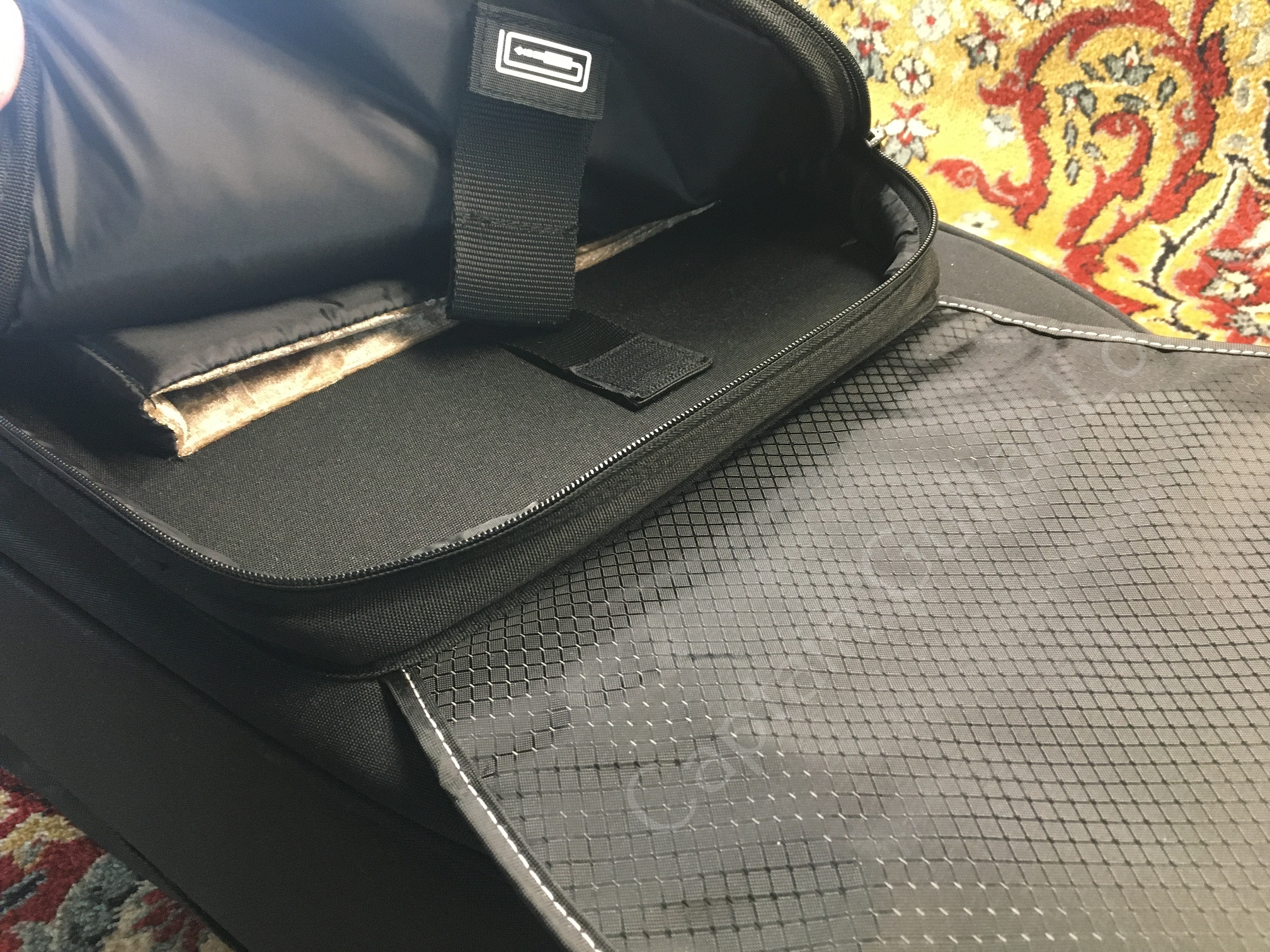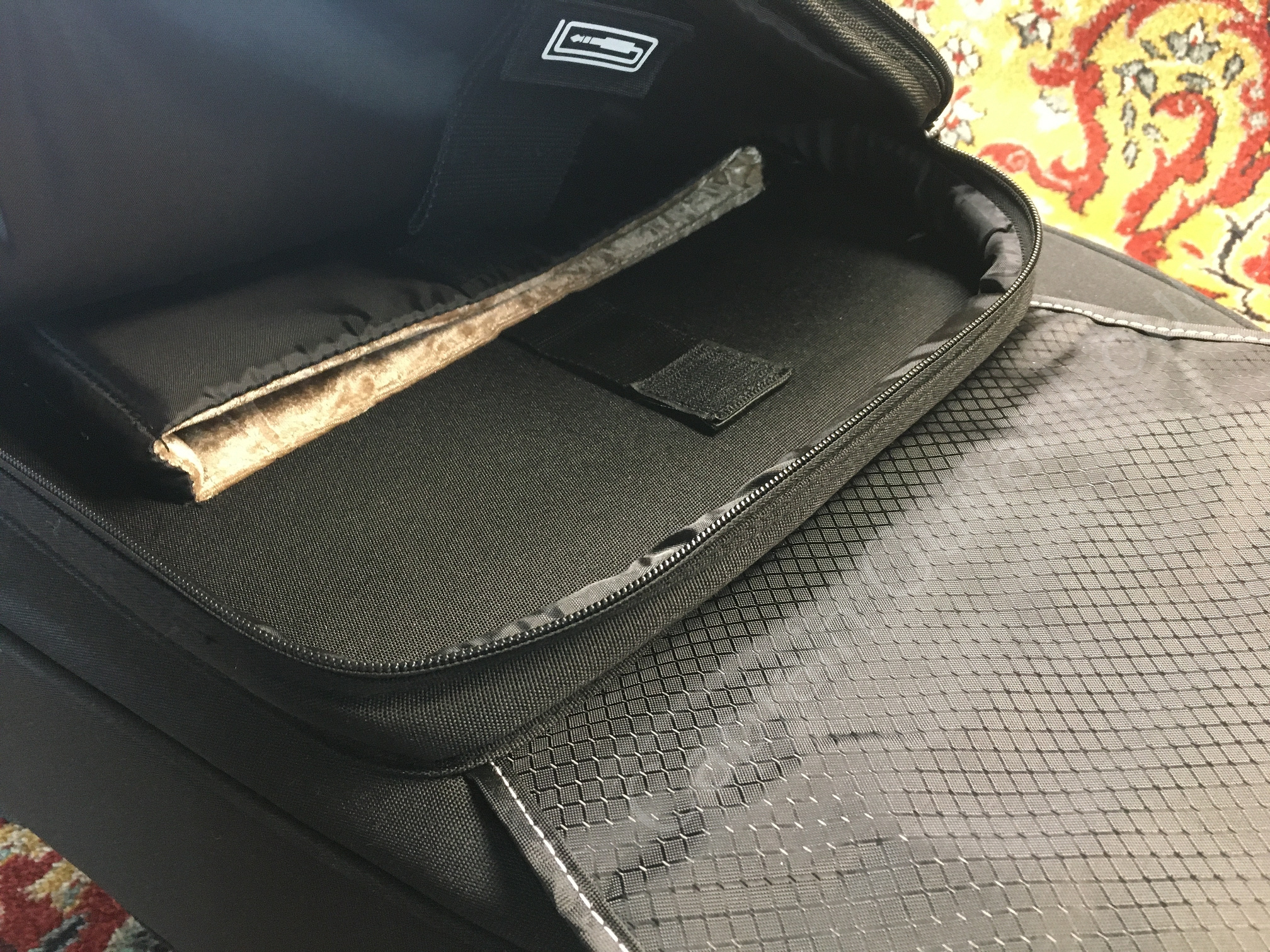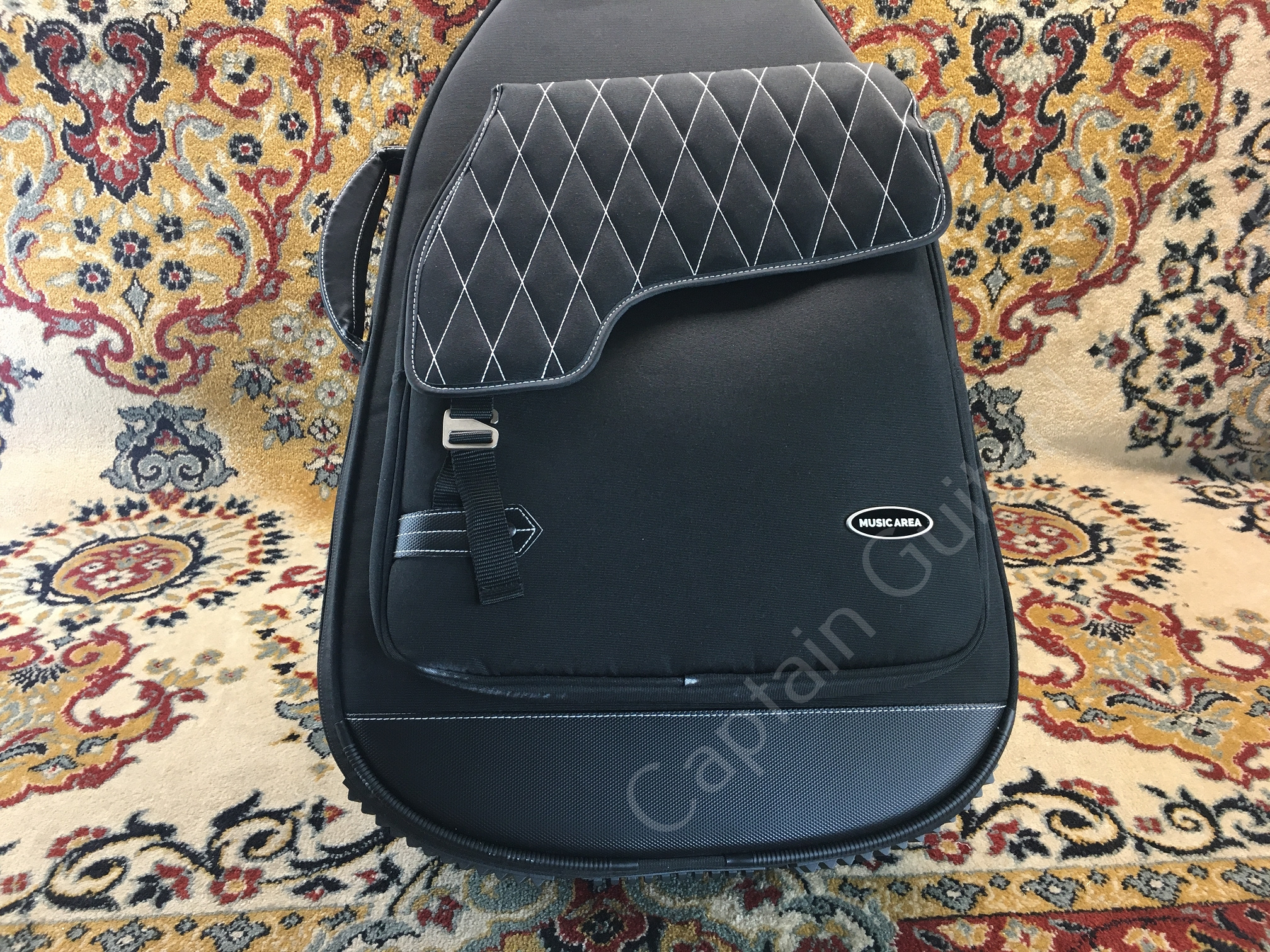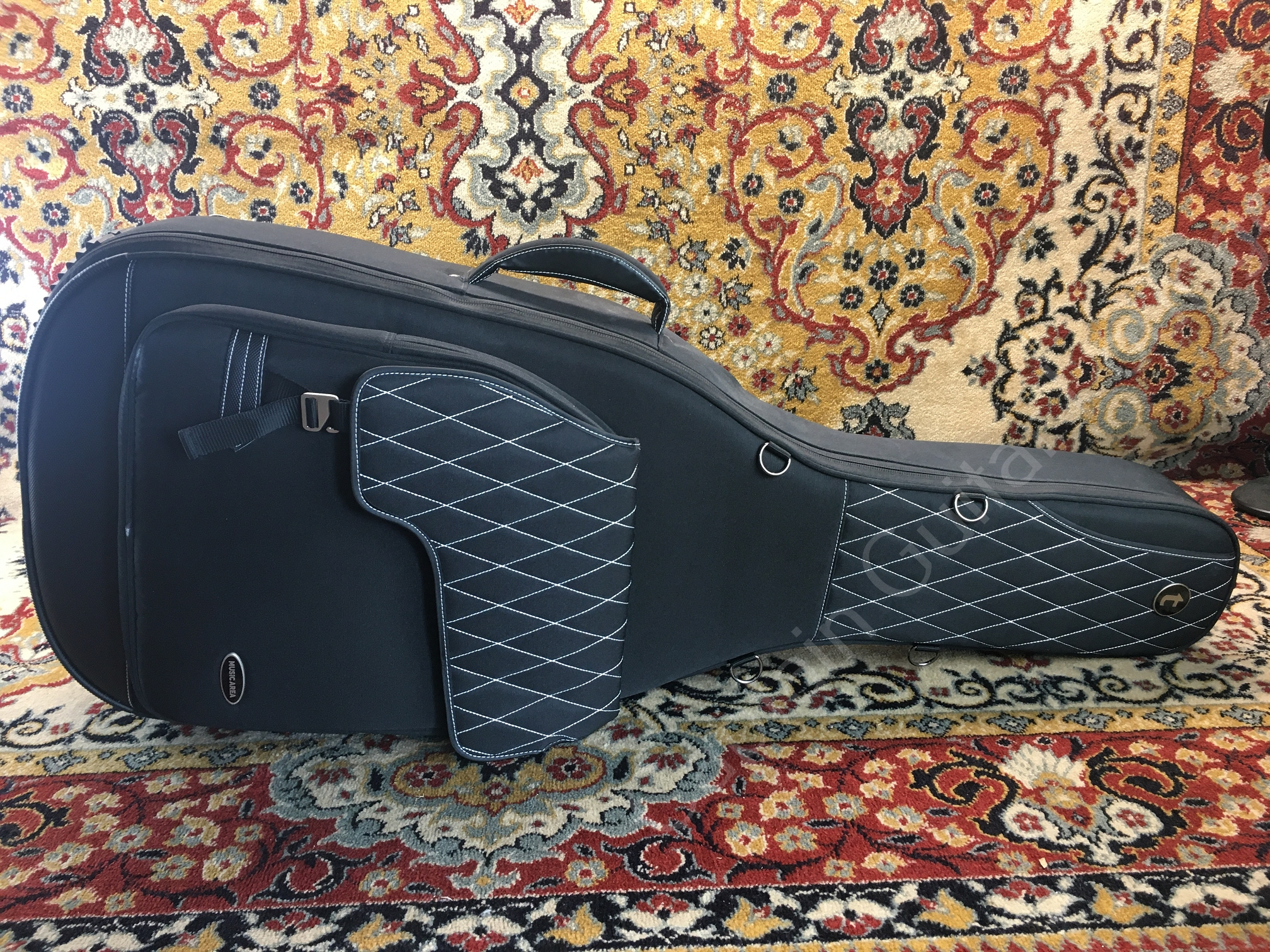 - fünf Staufächer für iPad, Notenblätter, Effektpedale, Zubehör etc.
